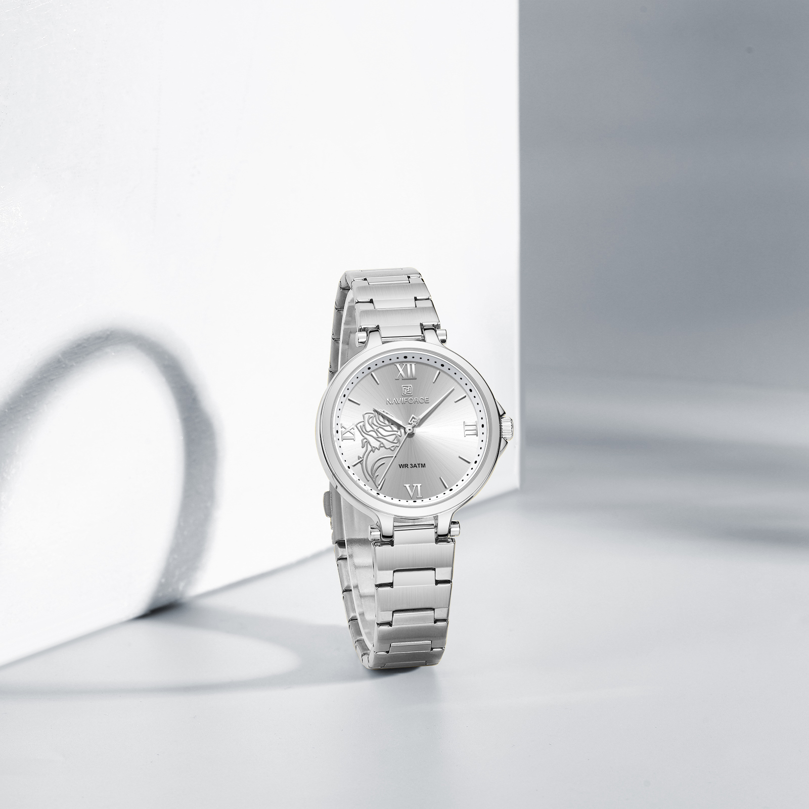 متاسفانه این کالا در حال حاضر موجود نیست. میتوانید از طریق لیست بالای صفحه، از محصولات مشابه این کالا دیدن نمایید.ساعتی زنانه با بدنهای گرد و زیبا، تزئینشده با الگوی گل رز برجسته روی صفحه و شمارۀ رومی که احساس لطیف و کلاسیکی را منتقل میکند. موتور دقیق کوارتز ژاپنی تضمینی برای نمایش زمان دقیق و قابل اعتماد است. بند استیل ضدزنگ درخشان، ترکیب دوام و زیبایی است. قطر قاب 34 میلیمتر و ضخامت 9 میلیمتر، آن را مناسب استفاده روزانه و قرارگیری آسان زیر آستین لباس میسازد. مقاومت تا فشار 3ATM به همراه شیشهٔ معدنی سختشده از این ساعت در برابر شرایط روزمره محافظت میکنند. این مدل تنها 70 گرم وزن دارد و بند آن تا حدود 220 میلیمتر قابل تنظیم است. مخاطب این ساعت زنانی هستند که به دنبال ترکیب زیباییهای کلاسیک و کاربردیگری مدرن هستند.
