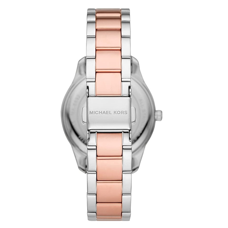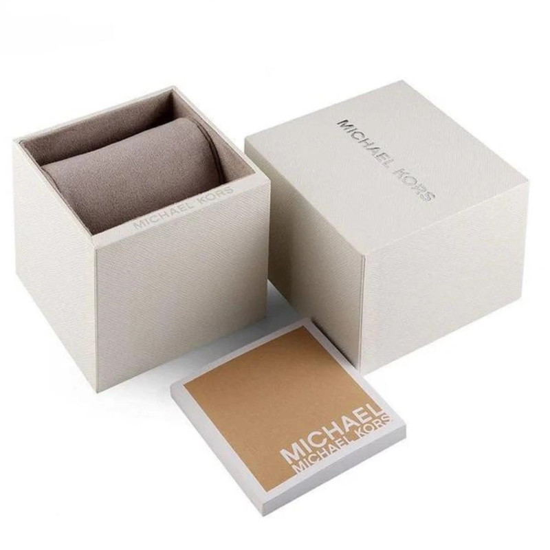 برند مایکل کورس برندی است که توسط کمپانی فسیل گروپ (سومین کمپانی ساعت سازی مطرح دنیا) ساخته می شود. موتور این ساعت توسط کمپانی میوتای ژاپن (بزرگترین کمپانی موتورساعت سازی دنیا) ساخته شده و از نوع کوارتز (باطری دار) است.این ساعت در ابعاد(قطر قاب 33 میلیمتر ضخامت قاب 8 میلیمتر عرض بند 16میلیمتر) طراحی شده و برای سلیقه هایی که ساعت سایز متوسط می پسندند، مناسب است. جنس بند و جنس بدنه این ساعت از استیل ضد حساسیت با کیفیت بالا (318 میکرون) می باشد. مقاومت این ساعت در برابر آب 5 اتمسفر می باشد.