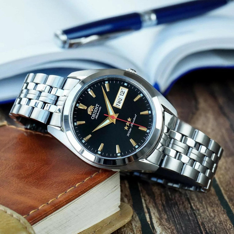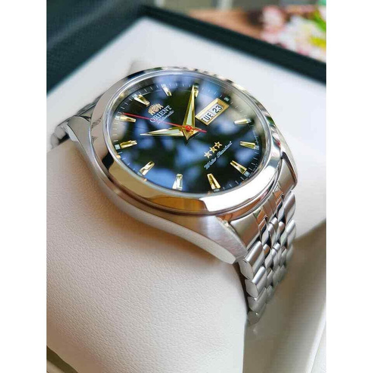 وقتی به ظاهر ساعت مچی مردانه اورینت مدل SAB0D003B8-B نگاه می کنیم، استایل کلاسیک و سادگی دوست داشتنی توجه ما را به خود جلب می کند. اما در این بررسی اولین چیزی که جلب توجه می کند، جلوه رنگی جذاب مشکی و استیل می باشد و ترکیب همین المان با عقربه های شب تاب ، جلوه کلاسیک جذاب و خیره کننده به این ساعت داده است. در صفحه این ساعت نیز تقویم روزشمار، نمایشگر روزهای هفته و عقربه های شبرنگ با ترکیب منظم به چشم می خورد.