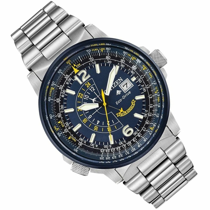 این مدل از ساعت مچی های مردانه برند سیتیزن دارای بدنه و بند استیل با ترکیب رنگهای نقره ای و سرمه ای بوده و با صفحه سرمه ای رنگ خاص خود صاحب ابهت و جذابیت بی نظیری شده است. این ساعت برند سیتیزن اکودرایو بوده و قابلیت شارژ با نور محیط را دارد. همچنین این ساعت سیتیزن دارای امکانات پرومستر و خلبانی و 2 زمانه بودن میباشد. از ویژگی های منحصر بفرد این طرح از ساعت سیتیزن میتوان به قابلیت ذخیره شارژ باطری تا 6 ماه و نمایشگر روزهای ماه و وضعیت 24ساعته اشاره کرد. همچنین اعداد دور صفحه ی این ساعت تبدیلات مهندسی و خلبانی بسیاری را تسهیل میکند و به راحتی میتوان با آن مایل به کیلومتر و یا گالن به لیتر و ... را محاسبه کرد.
