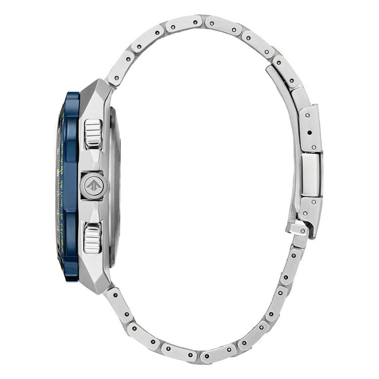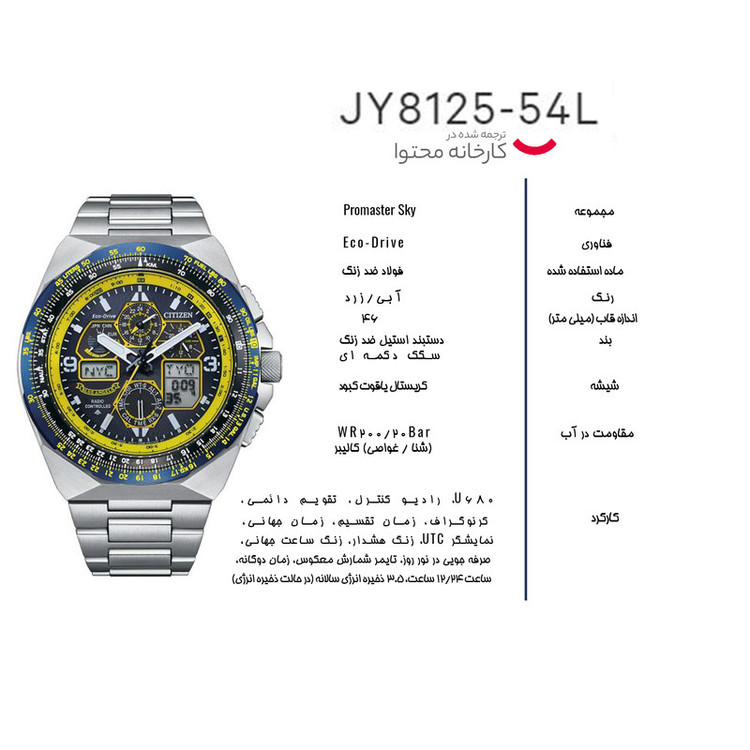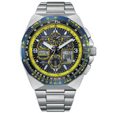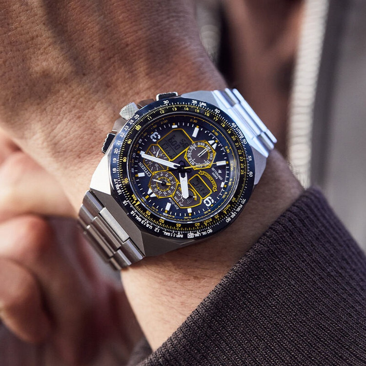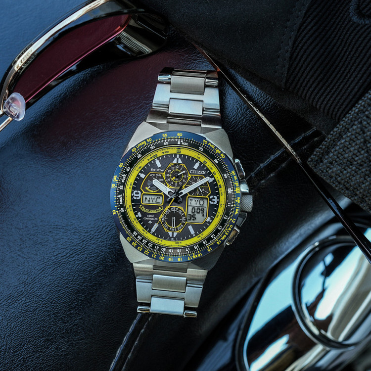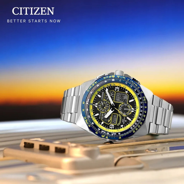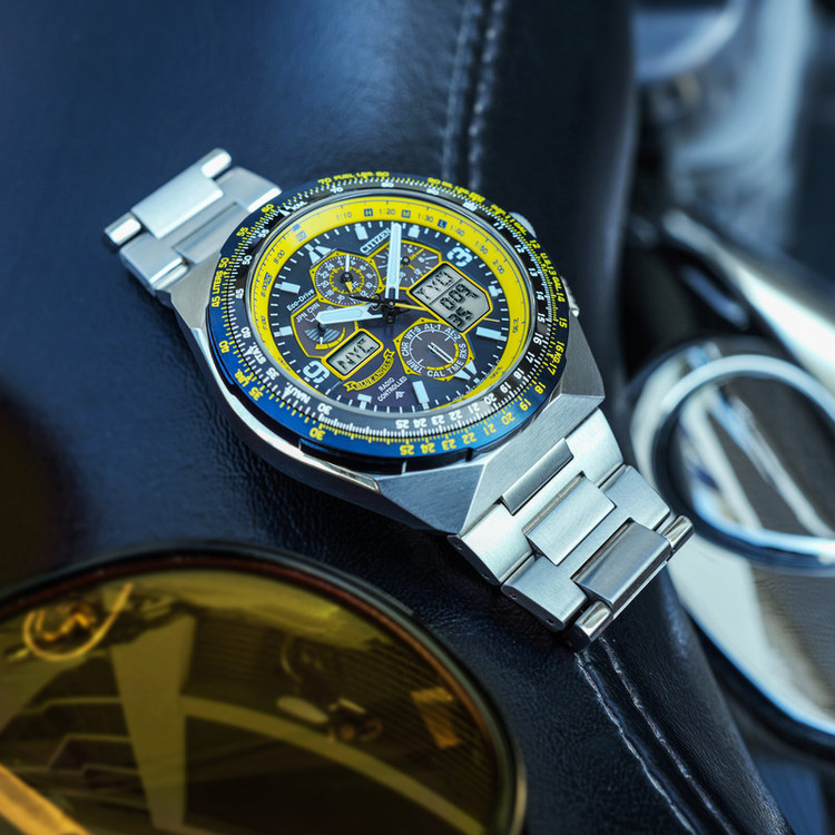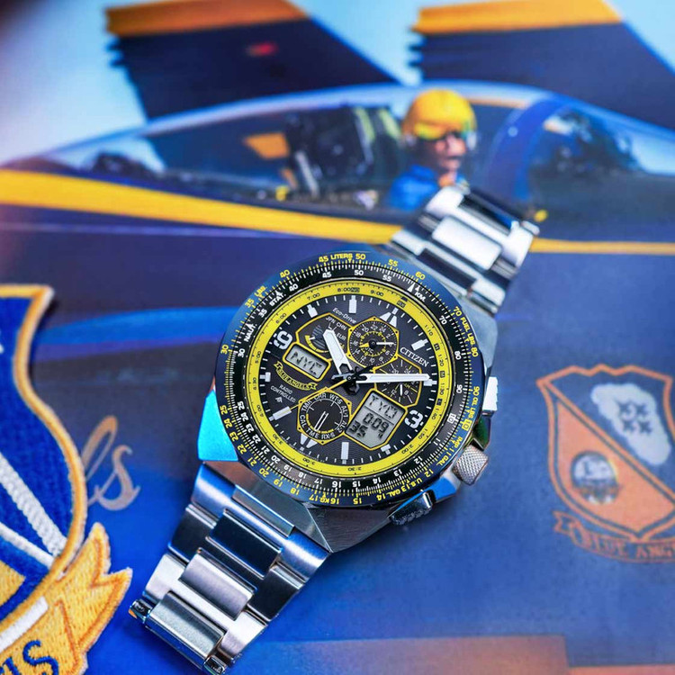 ماموریت فرشتگان آبی، نمایش غرور و حرفهایگری ایالات متحده است.نیروی دریایی و سپاه تفنگداران دریایی از طریق دقت و تعهد تخصصی خود به تعالی و خدمترسانی، این ساعت استثنایی دارای قاب استیل ضد زنگ نقرهای رنگ با قاب آبی یونی، قاب داخلی زرد رنگ و صفحه آبی رنگ پوشیده شده با کریستال یاقوت کبود است. این ساعت دارای همگامسازی ساعت اتمی برای دقت برتر، تنظیم زمان در ۴۳ شهر جهان، کرونوگراف ۱/۱۰۰ ثانیهای که تا ۲۴ ساعت را اندازهگیری میکند، تقویم دائمی، ۲ زنگ هشدار، تایمر شمارش معکوس ۹۹ دقیقهای، صفحه نمایش نور پس زمینه دیجیتال، صفحه نمایش زمان هماهنگ جهانی (UTC) و نشانگر ذخیره انرژی است. بند استیل ضد زنگ نقرهای رنگ با یک قفل تاشو با دکمههای فشاری پنهان بسته میشود. نشان فرشته آبی در پشت قاب تکرار شده است. این ساعت ورزشی متمایز از فناوری Eco-Drive ما استفاده میکند که به طور پایدار با نور تغذیه میشود و هرگز به باتری نیاز ندارد و تا ۲۰۰ متر در برابر آب مقاوم است. با این ساعت با عملکرد بالا، به ارتفاعات بالاتری برسید و به فرشتگان آبی نخبه ادای احترام کنید.