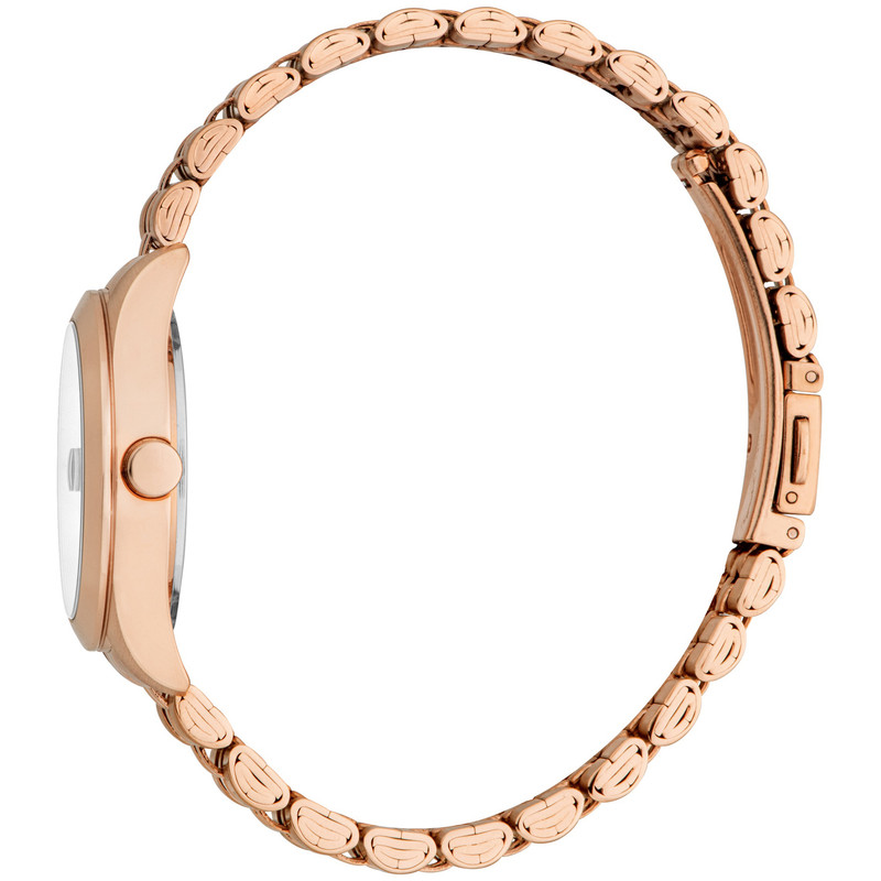 ساعت زنانه Esprit مدل ES1L295M2045 از کالکشن Madison با طراحی نازک و رنگ رزگلد جذاب، جلوهای شیک و امروزی دارد. قاب 30 mm آن از استیل ضدزنگ با روکش رزگلد، هماهنگ با بند فلزی، ظاهری دلنشین و لوکس فراهم میکند. صفحهی نقرهای ساده و خوانا همراه عقربههای آنالوگ و پنجره تاریخ، ترکیبی از زیبایی و کارایی را ارائه میدهد. این ساعت با موتور دقیق کوارتز، مقاومت 5 ATM در برابر آب است