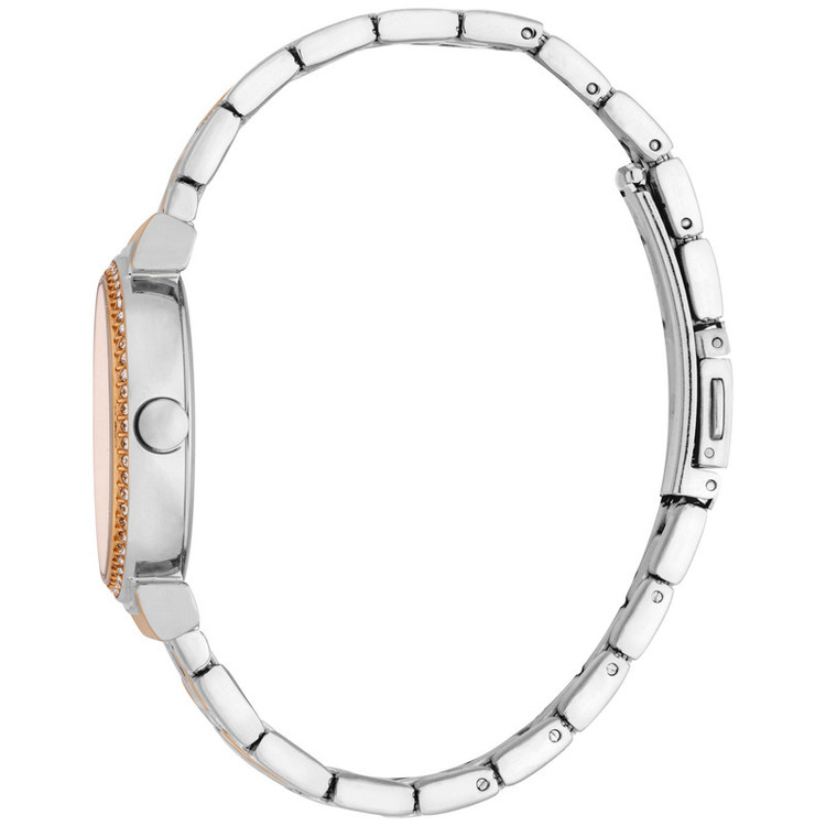 این ساعت زنانه شیک از برند Esprit با ترکیب دو رنگ جذاب نقرهای و رزگلد، جلوهای لوکس و متمایز دارد. صفحه رزگلد براق و بند فلزی ظریف، ظاهر آن را فوقالعاده جذاب کرده است. قطر قاب 32 میلیمتر و طراحی باریک و سبک، استفاده راحت روی مچ را تضمین میکند.مقاومت در برابر آب تا 50 متر زینهای عالی برای استفاده روزمره یا رسمی میسازد.