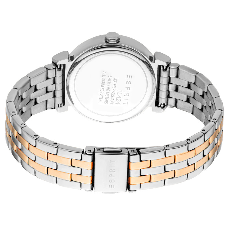 این ساعت زنانه شیک از برند Esprit با ترکیب دو رنگ جذاب نقرهای و رزگلد، جلوهای لوکس و متمایز دارد. صفحه رزگلد براق و بند فلزی ظریف، ظاهر آن را فوقالعاده جذاب کرده است. قطر قاب 32 میلیمتر و طراحی باریک و سبک، استفاده راحت روی مچ را تضمین میکند.مقاومت در برابر آب تا 50 متر زینهای عالی برای استفاده روزمره یا رسمی میسازد.