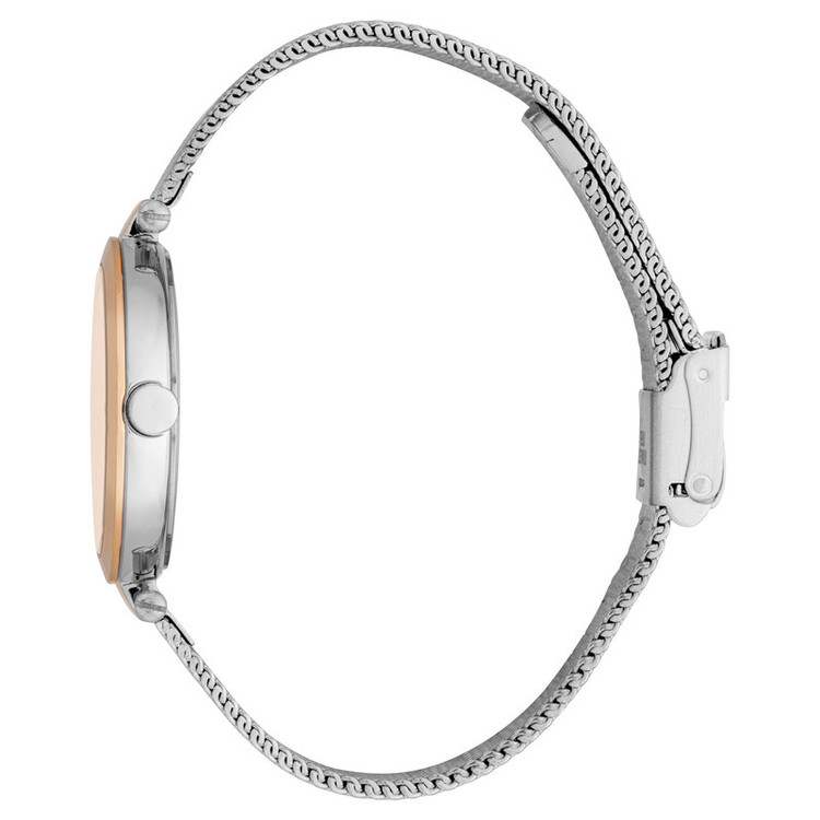 ساعت زنانه اسپریت مدل ES1L344M0185 با طراحی شیک و مدرن، جلوهای لوکس و امروزی دارد. قاب ۳۲ میلیمتری آن از استیل ضدزنگ با روکش رزگلد، هماهنگ با بند فلزی، ظاهری دلنشین و جذاب فراهم میکند. صفحه رزگلد با نگینهای تزئینی، ترکیبی از زیبایی و درخشش را ارائه میدهد. این ساعت با موتور دقیق کوارتز، مقاومت ۵ ATM در برابر آب،گزینهای ایدهآل برای استایلهای روزمره و رسمی است.