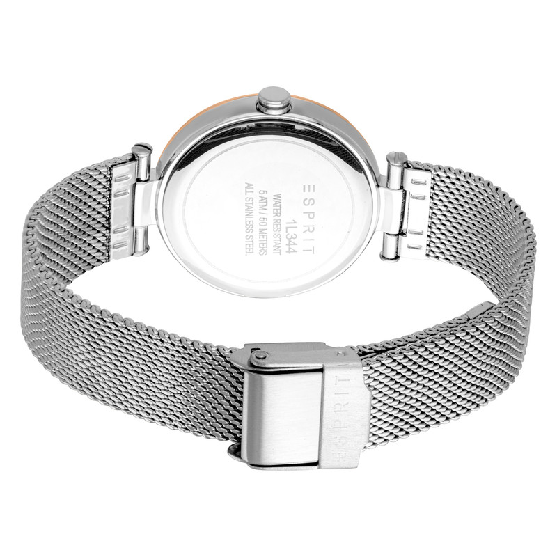 ساعت زنانه اسپریت مدل ES1L344M0185 با طراحی شیک و مدرن، جلوهای لوکس و امروزی دارد. قاب ۳۲ میلیمتری آن از استیل ضدزنگ با روکش رزگلد، هماهنگ با بند فلزی، ظاهری دلنشین و جذاب فراهم میکند. صفحه رزگلد با نگینهای تزئینی، ترکیبی از زیبایی و درخشش را ارائه میدهد. این ساعت با موتور دقیق کوارتز، مقاومت ۵ ATM در برابر آب،گزینهای ایدهآل برای استایلهای روزمره و رسمی است.