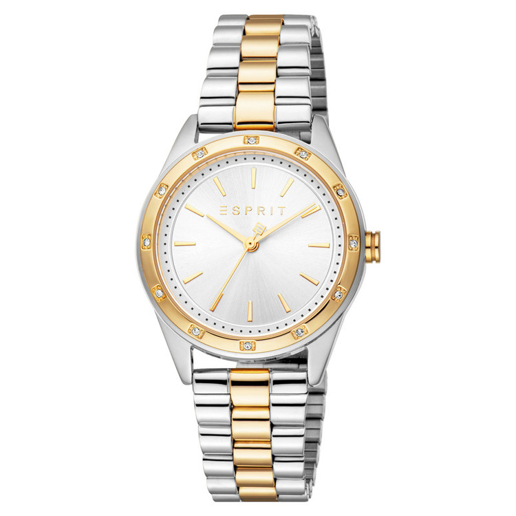 ساعت زنانه اسپریت مدل ES1L349M0055 با طراحی کلاسیک و ترکیب رنگهای استیل و طلایی، جلوهای شیک و امروزی دارد. قاب ۳۲ میلیمتری آن از استیل ضدزنگ با روکش طلایی و نقرهای، هماهنگ با بند فلزی، ظاهری دلنشین و جذاب فراهم میکند. صفحه نقرهای با نگینهای تزئینی، ترکیبی از زیبایی و درخشش را ارائه میدهد. این ساعت با موتور دقیق کوارتز، مقاومت ۵ ATM در برابر آب،گزینهای ایدهآل برای استایلهای روزمره و رسمی است.