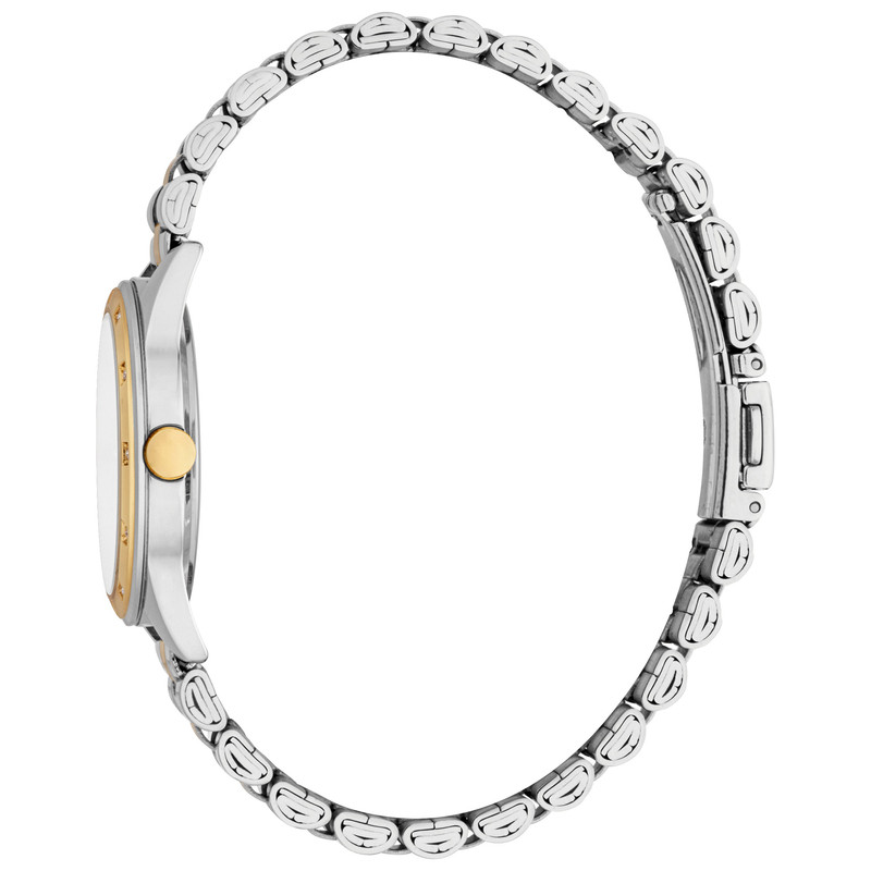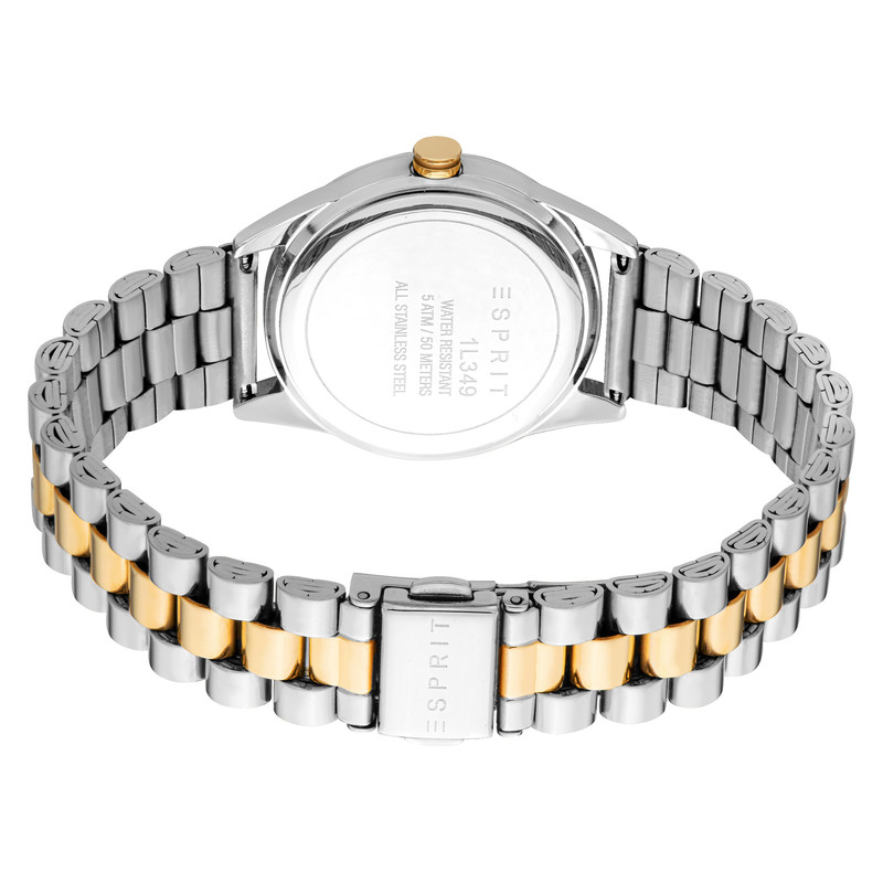 ساعت زنانه اسپریت مدل ES1L349M0055 با طراحی کلاسیک و ترکیب رنگهای استیل و طلایی، جلوهای شیک و امروزی دارد. قاب ۳۲ میلیمتری آن از استیل ضدزنگ با روکش طلایی و نقرهای، هماهنگ با بند فلزی، ظاهری دلنشین و جذاب فراهم میکند. صفحه نقرهای با نگینهای تزئینی، ترکیبی از زیبایی و درخشش را ارائه میدهد. این ساعت با موتور دقیق کوارتز، مقاومت ۵ ATM در برابر آب،گزینهای ایدهآل برای استایلهای روزمره و رسمی است.