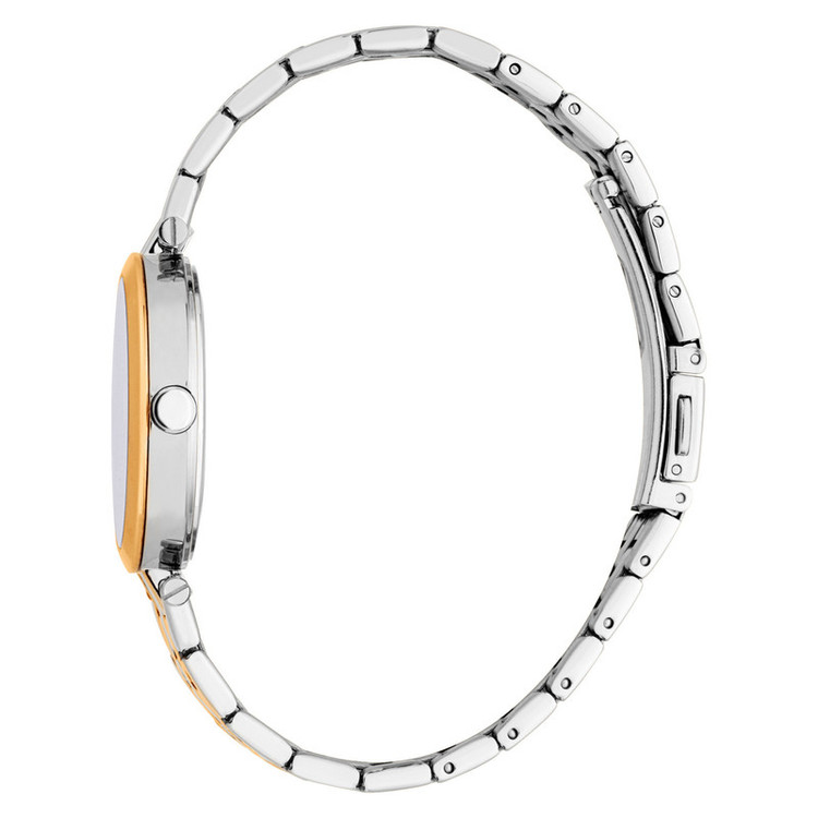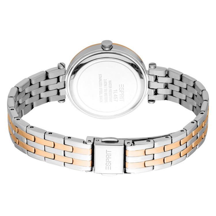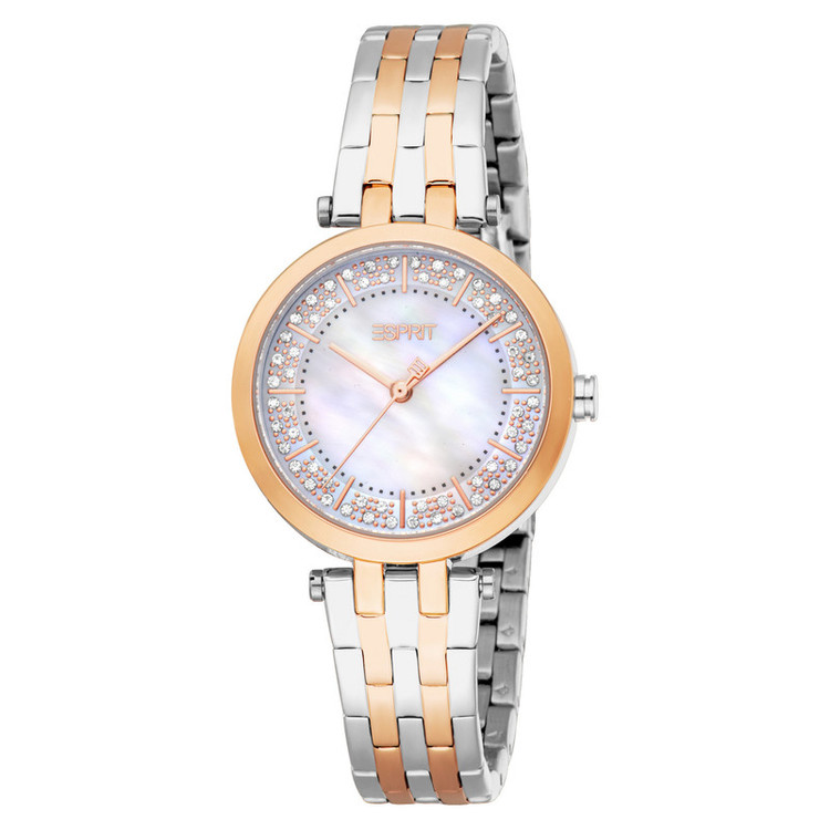 ساعت زنانه اسپریت مدل ES1L457M0065 با طراحی کلاسیک و بند استیل دو رنگ و صفحه مرواریدی سفید، جلوهای شیک و مدرن دارد. این ساعت با قطر قاب 30 میلیمتر و موتور کوارتز، مناسب استفاده روزمره است. مقاومت در برابر آب تا 30 متر، آن را برای استفاده در شرایط مختلف مناسب میسازد.