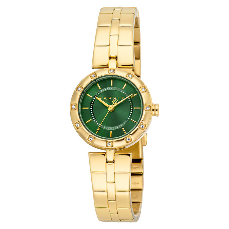 ساعت زنانه اسپریت مدل ES1L399M0065 با طراحی مینیمالیستی و ترکیب رنگهای طلایی و سبز تیره، جلوهای شیک و امروزی دارد. قاب ۲۶ میلیمتری آن از استیل ضدزنگ با روکش طلایی، هماهنگ با بند فلزی، ظاهری دلنشین و جذاب فراهم میکند. صفحه سبز تیره با عقربههای آنالوگ، ترکیبی از زیبایی و سادگی را ارائه میدهد. این ساعت با موتور دقیق کوارتز، مقاومت ۵۰ متر در برابر آب،گزینهای ایدهآل برای استایلهای روزمره و رسمی است.