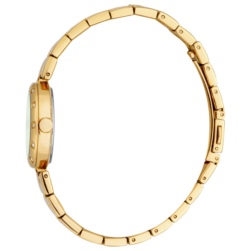 ساعت زنانه اسپریت مدل ES1L399M0065 با طراحی مینیمالیستی و ترکیب رنگهای طلایی و سبز تیره، جلوهای شیک و امروزی دارد. قاب ۲۶ میلیمتری آن از استیل ضدزنگ با روکش طلایی، هماهنگ با بند فلزی، ظاهری دلنشین و جذاب فراهم میکند. صفحه سبز تیره با عقربههای آنالوگ، ترکیبی از زیبایی و سادگی را ارائه میدهد. این ساعت با موتور دقیق کوارتز، مقاومت ۵۰ متر در برابر آب،گزینهای ایدهآل برای استایلهای روزمره و رسمی است.