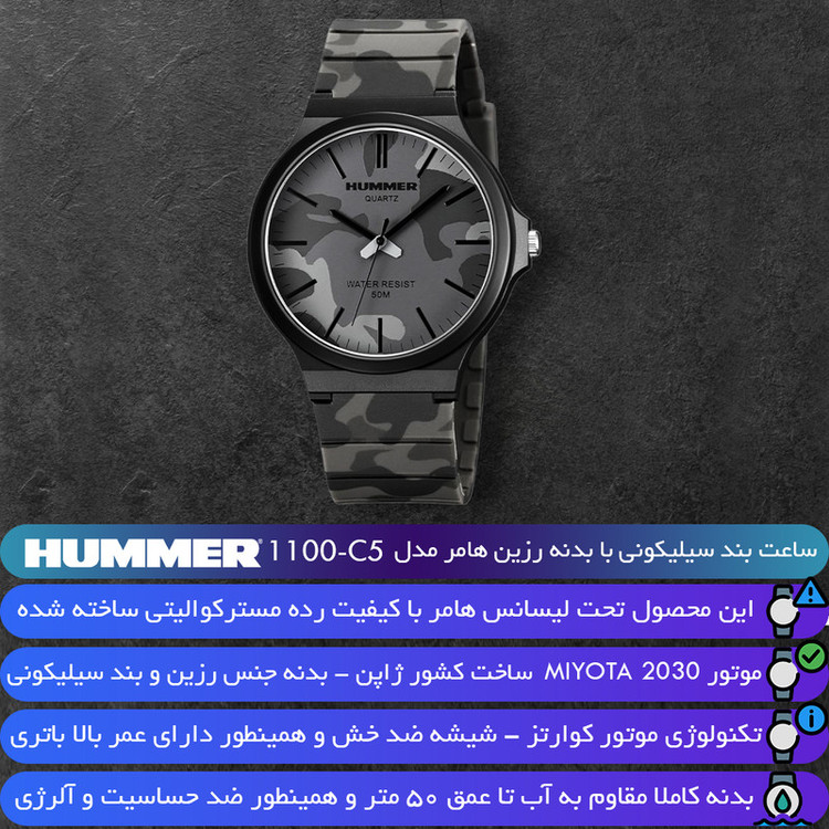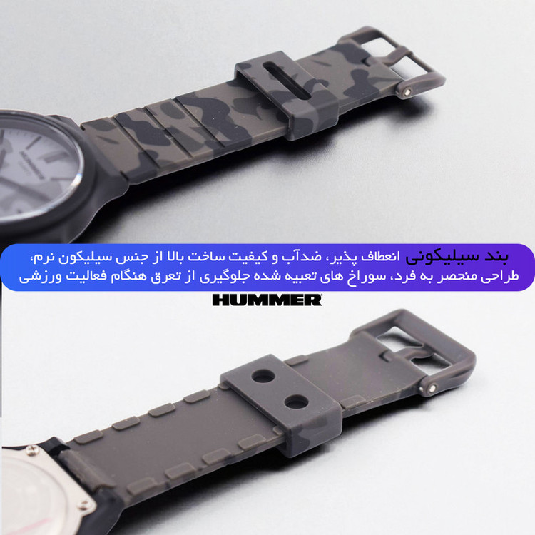 ساعت مچی عقربه ای مردانه برند هامر - Hummer یکی از برندهای معروف در طراحی ساعت های خاص و منحصر به فرد بوده، تحت لیسانس هامر و به صورت مسترکوالیتی تولید شده است. این شاهکار جدید از برند هامر، خوش ساخت ترین و خاص ترین طراحی بدنه و صفحه را در ساعت های عقربه ای دارد. این ساعت نمای بسیار زیبایی دارد و مناسب همه نوع سنی میباشد. در ساخت این ساعت از متریال های باکیفیت استفاده شده و مکانیزم لولا آن بسیار بادوام میباشد. این ساعت دارای بدنه رزین مقاوم و ضد آب و بند سیلیکونی میباشد که دیگر ترسی هنگام شست شو دست ها وجود ندارد و همینطور طراحی خاص این ساعت، آن را بسیار منحصر به فرد و مستر کرده. این برند از مواد با کیفیت برای ساخت ساعت هایش استفاده می کند تا بهترین تجربه را برای شما ارائه کند. با تهیه ساعت هامر، شما می توانید به راحتی از تمامی فعالیت های روزانه خود لذت ببرید و در عین حال، به نحوی شیک و جذاب به نظر برسید. ساعت مچی عقربه ای مردانه هامر مدل 1100H-C5 همراه هارد کیس و بگ برای شما ارسال خواهد شد.