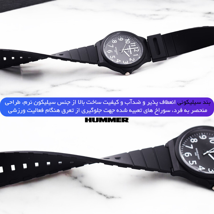 ساعت مچی عقربه ای مردانه برند هامر - Hummer یکی از برندهای معروف در طراحی ساعت های خاص و منحصر به فرد بوده، تحت لیسانس هامر و به صورت مسترکوالیتی تولید شده است. این شاهکار جدید از برند هامر، خوش ساخت ترین و خاص ترین طراحی بدنه و صفحه را در ساعت های عقربه ای دارد. این ساعت نمای بسیار زیبایی دارد و مناسب همه نوع سنی میباشد. در ساخت این ساعت از متریال های باکیفیت استفاده شده و مکانیزم لولا آن بسیار بادوام میباشد. این ساعت دارای بدنه رزین مقاوم و ضد آب و بند سیلیکونی میباشد که دیگر ترسی هنگام شست شو دست ها وجود ندارد و همینطور طراحی خاص این ساعت، آن را بسیار منحصر به فرد و مستر کرده. این برند از مواد با کیفیت برای ساخت ساعت هایش استفاده می کند تا بهترین تجربه را برای شما ارائه کند. با تهیه ساعت هامر، شما می توانید به راحتی از تمامی فعالیت های روزانه خود لذت ببرید و در عین حال، به نحوی شیک و جذاب به نظر برسید. ساعت مچی عقربه ای مردانه هامر مدل 1100H-C4 همراه هارد کیس و بگ برای شما ارسال خواهد شد.