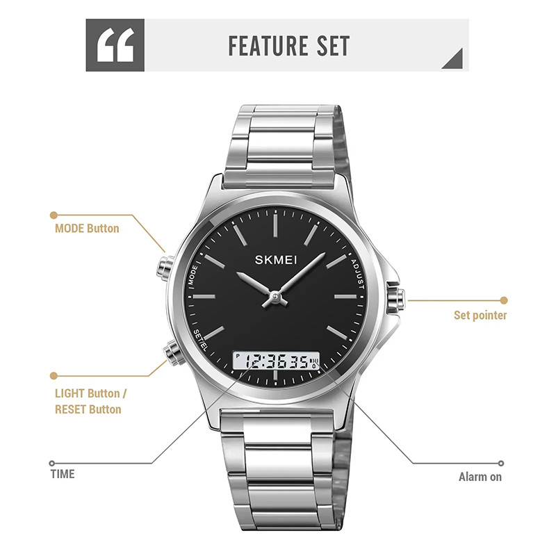 قابلیتهای ساعت : نمایش 24 ساعته , نمایش ساعت دوم , نور پس زمینه , تاریخ شمار , آلارم , ضد آب