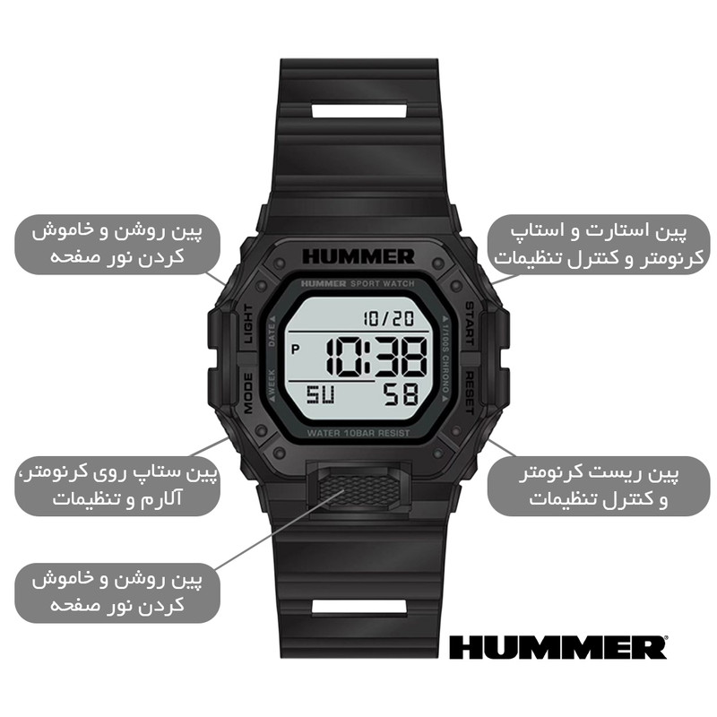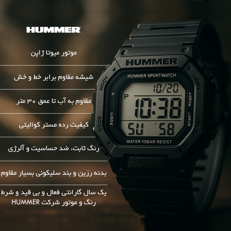 ساعت مچی عقربه ای مردانه برند هامر - Hummer یکی از برندهای معروف در طراحی ساعت های خاص و منحصر به فرد بوده، تحت لیسانس هامر و به صورت مسترکوالیتی تولید شده است. این شاهکار جدید از برند هامر، خوش ساخت ترین و خاص ترین طراحی بدنه و صفحه را در ساعت های عقربه ای دارد. این ساعت نمای بسیار زیبایی دارد و مناسب همه نوع سنی میباشد. در ساخت این ساعت از متریال های باکیفیت استفاده شده و مکانیزم لولا آن بسیار بادوام میباشد. این ساعت دارای بدنه رزین مقاوم و ضد آب و بند سیلیکونی میباشد که دیگر ترسی هنگام شست شو دست ها وجود ندارد و همینطور طراحی خاص این ساعت، آن را بسیار منحصر به فرد و مستر کرده. این برند از مواد با کیفیت برای ساخت ساعت هایش استفاده می کند تا بهترین تجربه را برای شما ارائه کند. با تهیه ساعت هامر، شما می توانید به راحتی از تمامی فعالیت های روزانه خود لذت ببرید و در عین حال، به نحوی شیک و جذاب به نظر برسید. ساعت مچی عقربه ای مردانه هامر مدل 1440 همراه هارد کیس و بگ برای شما ارسال خواهد شد.
