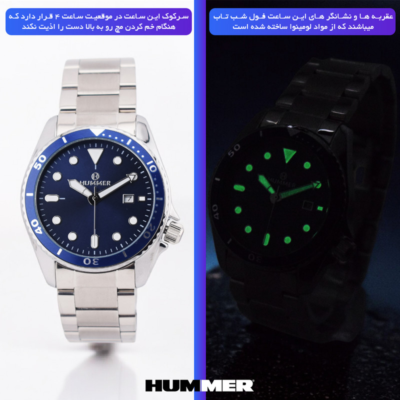 عقربه های شب تاب این ساعت بسیار منحصر به فرد می باشد. این ساعت دارای بدنه استیل مقاوم و ضد آب و بند استیل میباشد که دیگر ترسی هنگام شست شو دست ها وجود ندارد و همینطور طراحی خاص این ساعت، آن را بسیار منحصر به فرد و مستر کرده.