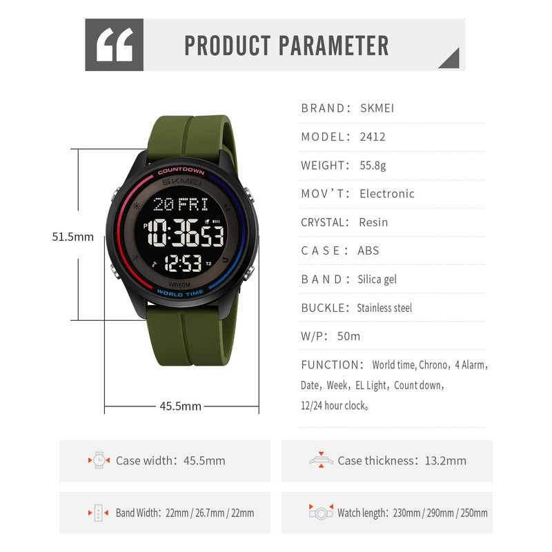 ساعت مچی دیجیتال مردانه اسکمی مدل 2412 AG