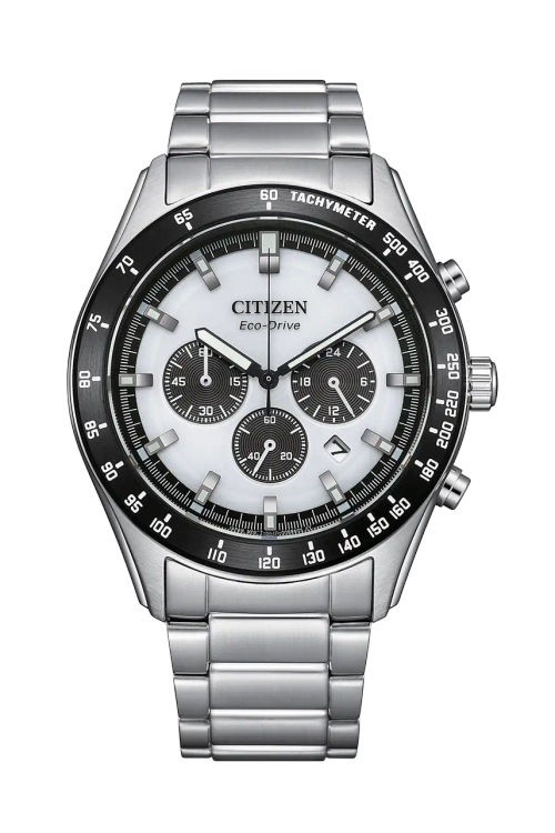 ساعت Citizen CA4674-58A با ترکیب رنگ مشکی و نقرهای، یک کرنوگراف sporty-مجلسی است که به لطف فناوری Eco-Drive، نگهداری آن بسیار آسان است. طراحی "پاندای معکوس" و وجود تاخیمتر، آن را برای علاقهمندان به ساعتهای کاربردی و خوشساخت بسیار جذاب میکند.