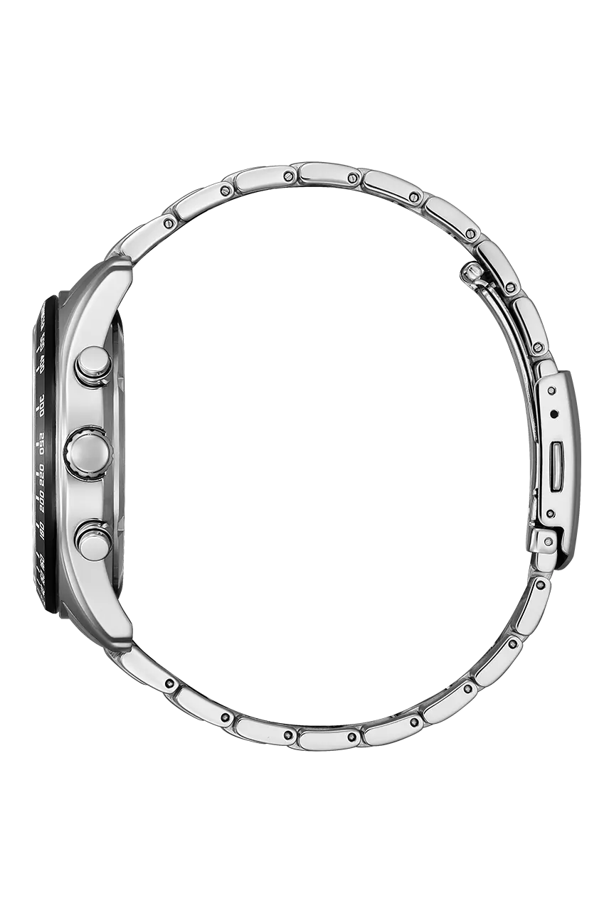 ساعت Citizen CA4674-58A با ترکیب رنگ مشکی و نقرهای، یک کرنوگراف sporty-مجلسی است که به لطف فناوری Eco-Drive، نگهداری آن بسیار آسان است. طراحی "پاندای معکوس" و وجود تاخیمتر، آن را برای علاقهمندان به ساعتهای کاربردی و خوشساخت بسیار جذاب میکند.
