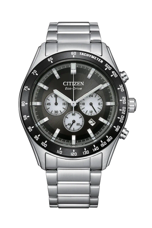ساعت Citizen CA4574-58A با ترکیب رنگ مشکی و نقرهای، یک کرنوگراف sporty-مجلسی است که به لطف فناوری Eco-Drive، نگهداری آن بسیار آسان است. طراحی "پاندای معکوس" و وجود تاخیمتر، آن را برای علاقهمندان به ساعتهای کاربردی و خوشساخت بسیار جذاب میکند.
