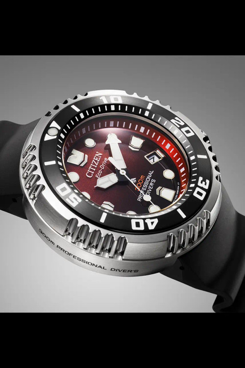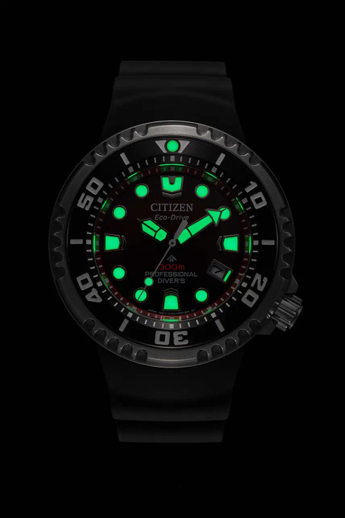 ساعت غواصی ISO 6425 نمایش تاریخ اکو-درایو (شارژ با هر منبع نوری، بدون نیاز به تعویض منظم باتری) عملکرد هشدار شارژ ناکافی عملکرد جلوگیری از شارژ بیش از حد با بند افزایش طول از جنس لاستیک مصنوعی