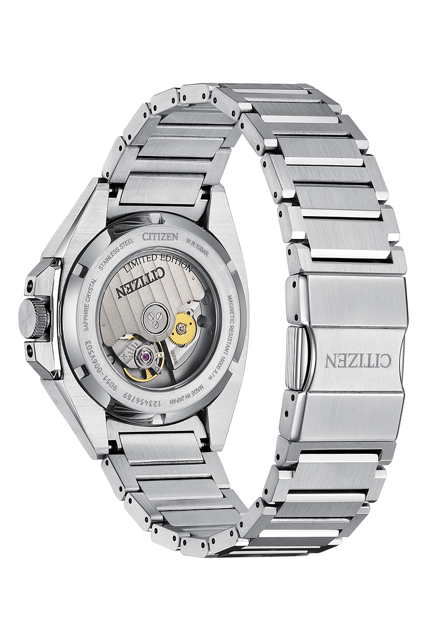 حرکت مکانیکی مقاوم در برابر مغناطیسی Cal.9051 مقاومت مغناطیسی: 16000 A/m عملکرد هک پشت کیف شفاف نمایش تاریخ ساخت ژاپن