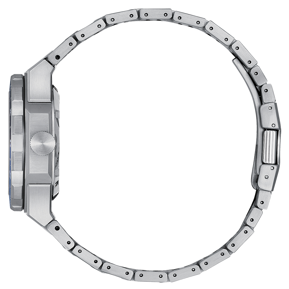 ساعت اتوماتیک چشمنواز از مجموعه سری ۸ با قابلیت GMT. با قاب و بند استیل ضد زنگ، شیشه یاقوت کبود، صفحه آبی بافتدار و قاب قرمز-آبی. مجهز به کالیبر مکانیکی ۹۰۵۴ با ۵۰ ساعت ذخیره انرژی، دقت -۱۰/+۲۰ ثانیه در روز و مقاومت در برابر آب تا فشار ۱۰ بار. قطر قاب: ۴۲ میلیمتر.