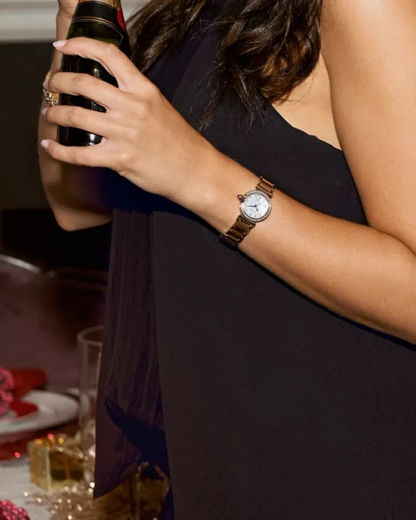 خطوط کلاسیک و رگههایی از عاشقانه، این جدیدترین ساعت به مجموعه زنانه ما، سیتیزن ال مائه، را به یک افزودنی جذاب تبدیل کرده است.از تجمل پایدار. با طراحی قاب ۲۶ میلیمتری که از یک بطری عطر قدیمی الهام گرفته شده و خطوط منحنی و براق زنگهای ماه مه را به نمایش میگذارد، شکل قاب الماسنشان آن در موقعیت ساعت ۳، جایی که تاج آن شبیه یک درپوش عطر زیبا است، از ویژگی متمایزی برخوردار است.