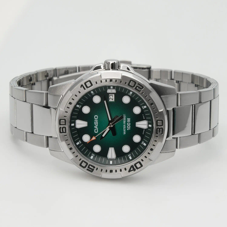 ساعت Casio MTD-140D-3A از سری محبوب Marine Sports بوده و برای افرادی طراحی شده که یک ساعت روزمره، باکیفیت و مقاوم میخواهند. این مدل با ظاهر اسپرت، رنگ سبز خاص صفحه و بند استیل، هم برای استفاده روزانه مناسب است و هم در استایل نیمهرسمی جلوهی خوبی دارد.