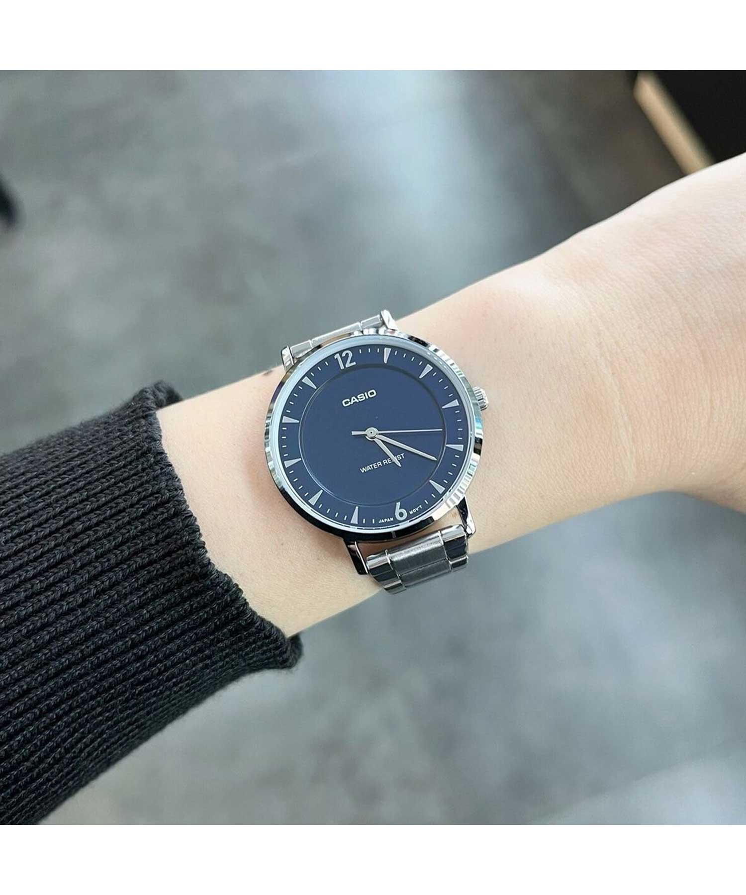 ساعت زنانهی کاسیو مدل LTP-VT04D-2E طراحی زیبا و ظریفی داره، با قاب استیل ضد زنگ و صفحهای در رنگ آبی ملایم. این ساعت هم مقاومت خوبی داره و هم ظاهری شیک و مدرن