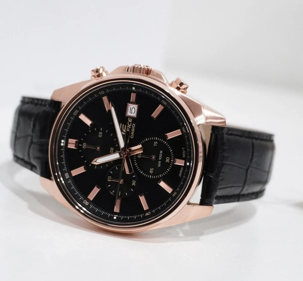 ساعت Casio Edifice EFV-610ECL-1A یکی از مدلهای پرفروش و محبوب سری ادیفایس است که با طراحی شیک، کیفیت ساخت بالا و عملکرد دقیق، انتخابی عالی برای آقایانی محسوب میشود که به دنبال ساعتی روزمره و در عین حال رسمی هستند. ترکیب صفحه مشکی با جزئیات رزگلد جلوهای جذاب و مدرن ایجاد کرده و بند چرمی مشکی نیز استایل ساعت را کامل میکند. این مدل به دلیل طراحی کلاسیک-اسپرت، برای استفاده در محیط کار، قرارهای رسمی و حتی فعالیتهای روزمره کاملا مناسب است.