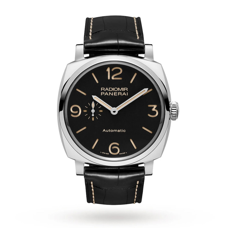 بند چرمی مشکی با کیفیت بسیار بالا و دوختهای روشن کناری، هماهنگی کاملی با صفحه ساعت دارد و راحتی بینظیری را روی مچ دست فراهم میکند. اگر به دنبال ساعتی هستید که هم در جلسات رسمی و هم در تیپهای روزمره خاص و لوکس به نظر برسد، رادیومیر بهترین انتخاب برای شماست.