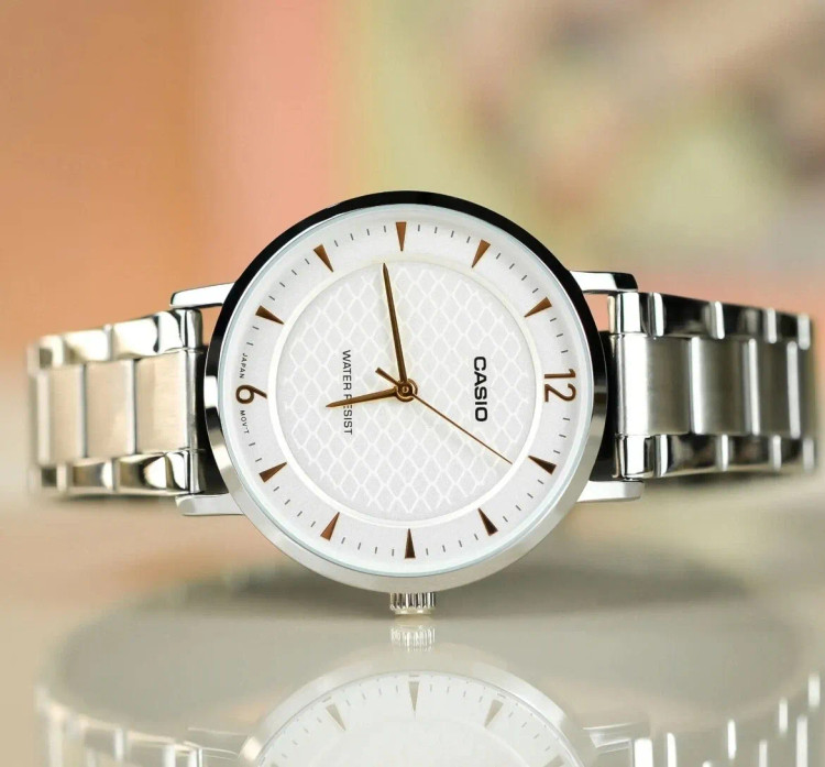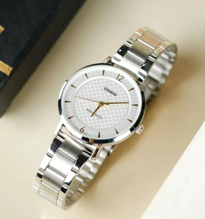 اگر طرفدار استایلی هستید که هیچگاه از مد نمیافتد، ساعت مچی زنانه کاسیو مدل LTP-VT04D-7A دقیقاً برای شما طراحی شده است. این ساعت با طراحی مونوکروم (تکرنگ) و یکدست نقرهای خود، نمادی از وقار و آراستگی است.