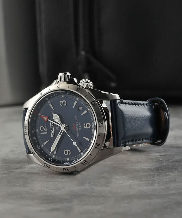 اولین چیزی که در ساعت سیکو SPB377J1 جلب توجه میکند، صفحه نمایش سرمهای (آبی عمیق) با بافت ظریف و عقربههای کلاسیک است. این مدل که به عنوان نسخه GMT آلپینیست شناخته میشود، دارای قاب استیل ضد زنگ با پوشش سخت (Super Hard Coating) است که مقاومت بالایی در برابر خط و خش دارد. بند چرمی آبی رنگ با قفل کلیپسی، هماهنگی بینظیری با صفحه ساعت داشته و راحتی فوقالعادهای را روی دست ایجاد میکند.