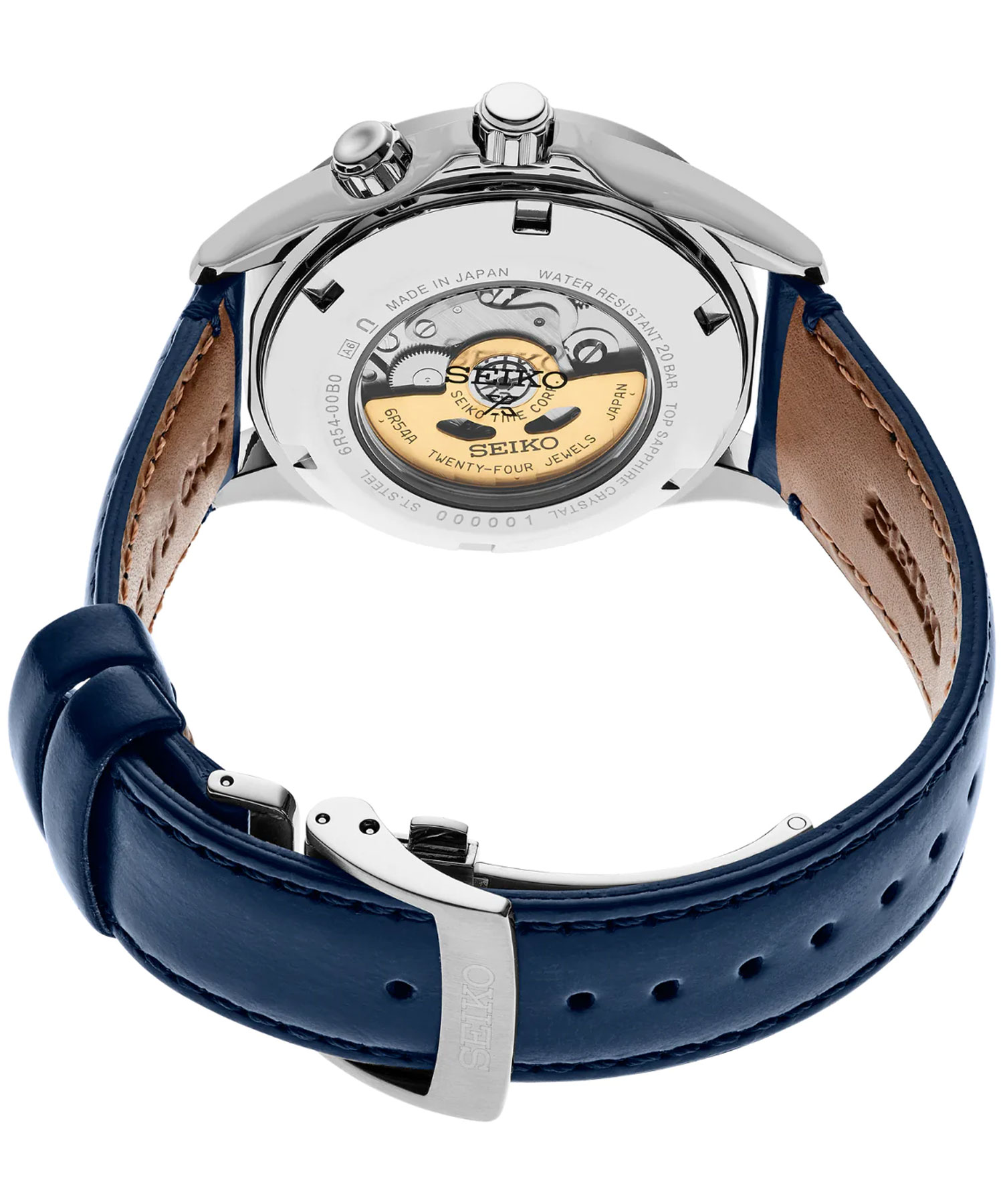 قلب تپنده این ساعت، موتور مکانیکی اتوماتیک جدید سیکو با کالیبر 6R54 است. این موتور پیشرفته قابلیت ذخیره انرژی (Power Reserve) تا 72 ساعت (3 روز کامل) را دارد. این یعنی اگر ساعت را روز جمعه از دست درآورید، دوشنبه صبح همچنان دقیق کار خواهد کرد. همچنین وجود قابلیت GMT (نمایش منطقه زمانی دوم) با عقربه قرمز رنگ مجزا، این ساعت را برای مسافران و تجار بینالمللی ایدهآل کرده است.