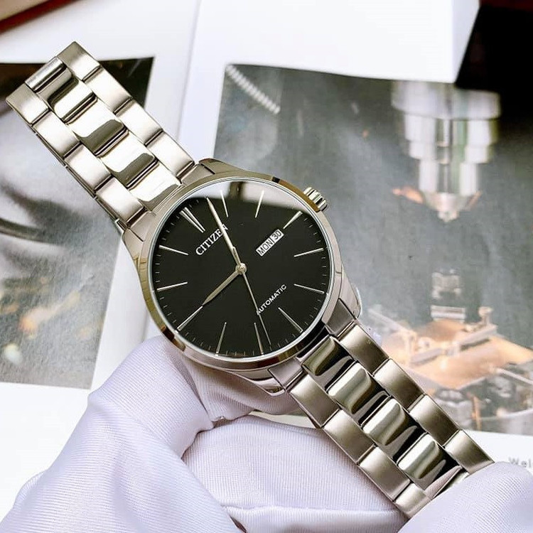 این مدل از ساعت مچی های مردانه برند سیتیزن دارای بند و بدنه ی استیل به رنگ نقره ای و صفحه ی مشکی بوده و آن را صاحب ابهت و جذابیت بی نظیری کرده است. این ساعت برند سیتیزن اتوماتیک بوده و قابلیت شارژ با حرکت دست را دارد. از ویژگی های منحصر بفرد این طرح از ساعت سیتیزن میتوان به قابلیت نمایشگر روزهای ماه و هفته اشاره کرد.