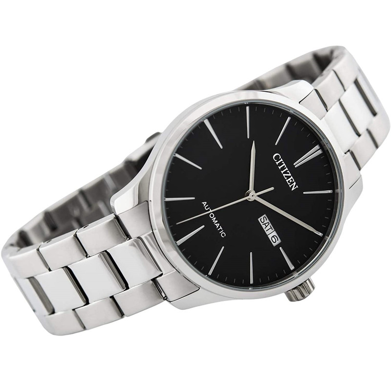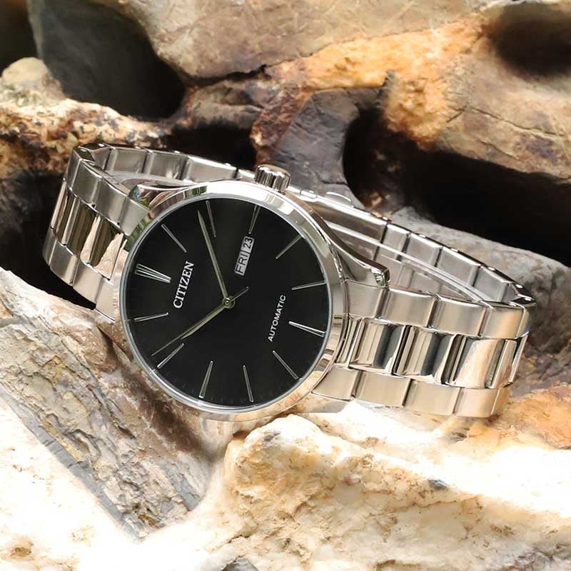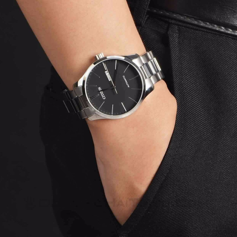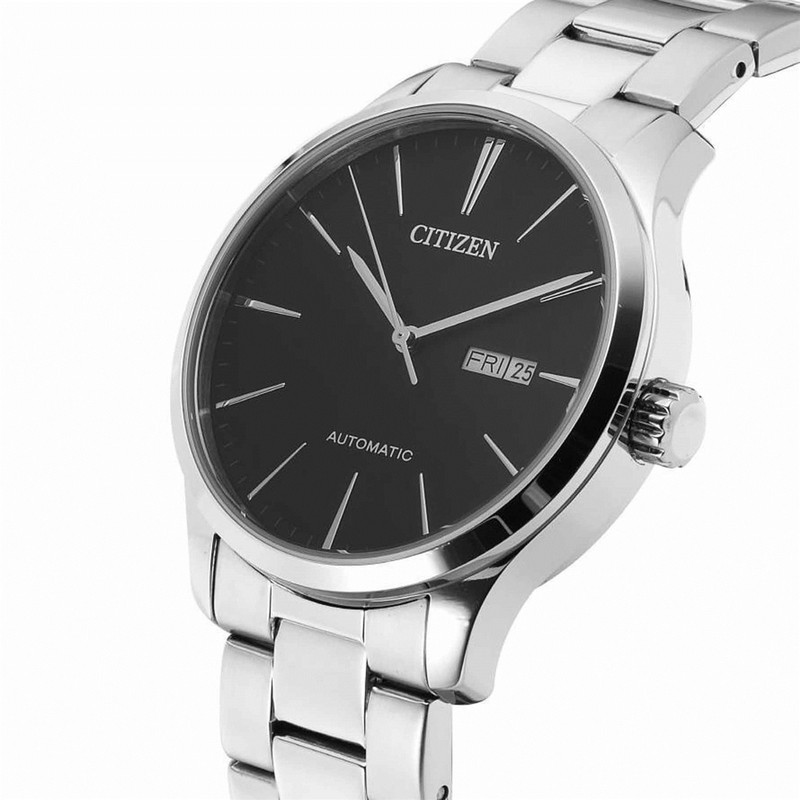 این مدل از ساعت مچی های مردانه برند سیتیزن دارای بند و بدنه ی استیل به رنگ نقره ای و صفحه ی مشکی بوده و آن را صاحب ابهت و جذابیت بی نظیری کرده است. این ساعت برند سیتیزن اتوماتیک بوده و قابلیت شارژ با حرکت دست را دارد. از ویژگی های منحصر بفرد این طرح از ساعت سیتیزن میتوان به قابلیت نمایشگر روزهای ماه و هفته اشاره کرد.