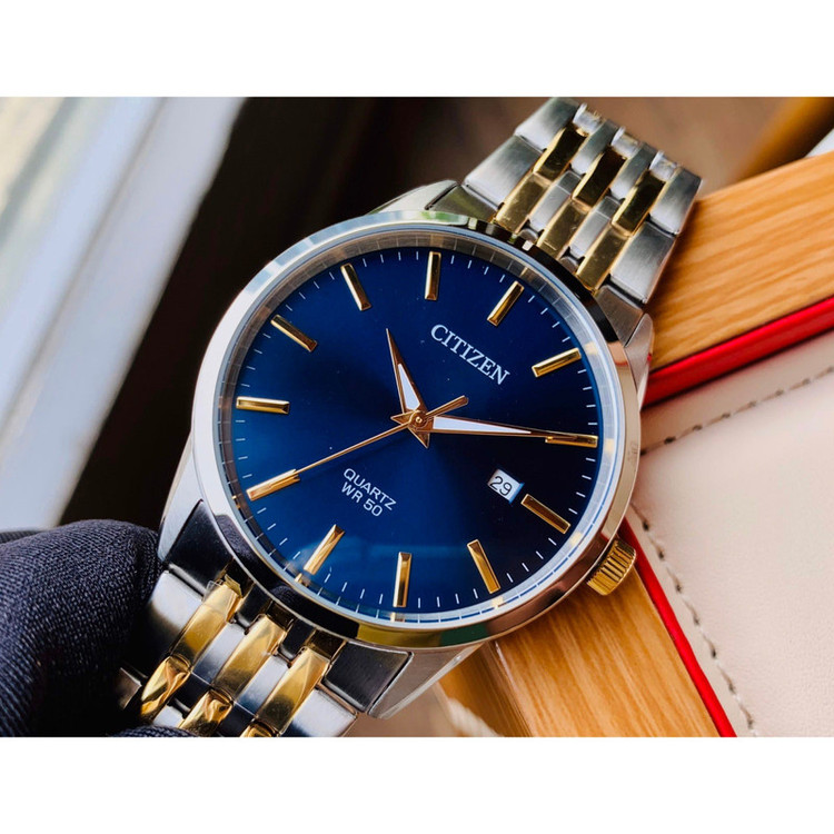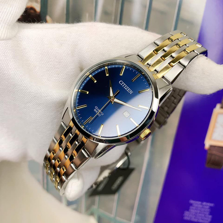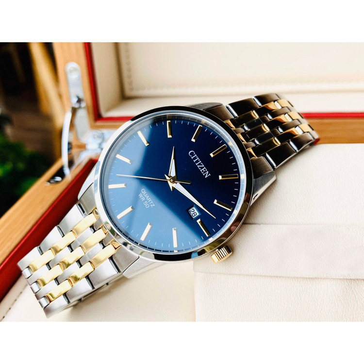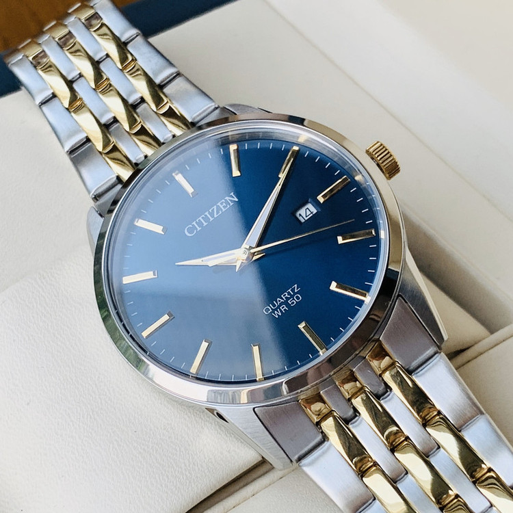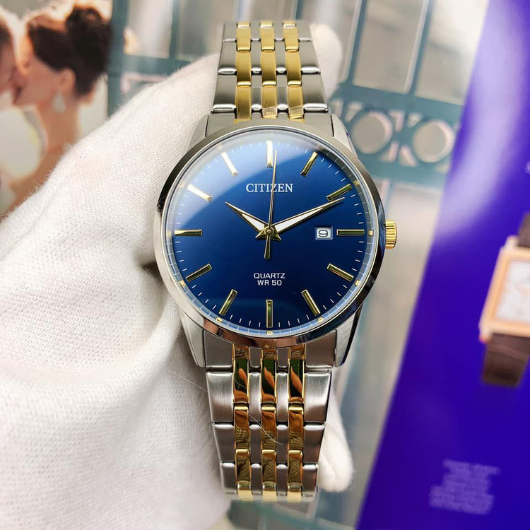 این طرح از ساعت مچی های مردانه برند سیتیزن مناسب ست کلاسیک و مجلسی می باشد و از ظرافت خاص و منحصر به فردی برخوردار است. این مدل از ساعت های برند سیتیزن جزو ساعت های پرفروش این برند می باشد و دارای بند و بدنه استیل نقره ای و طلایی و صفحه ی سرمه ای بوده و در عین ظرافت صاحب جذابیت و ابهت بی نظیری است. همچنین دارای نمایشگر روزهای ماه نیز میباشد.