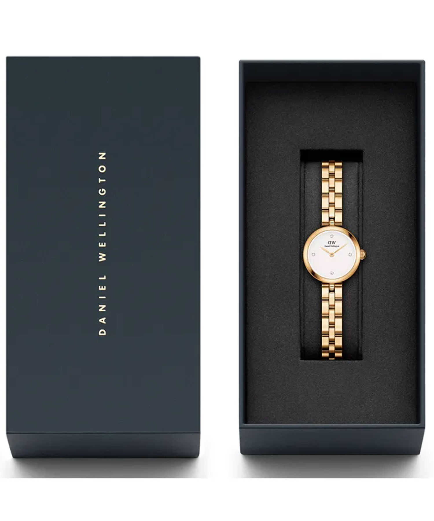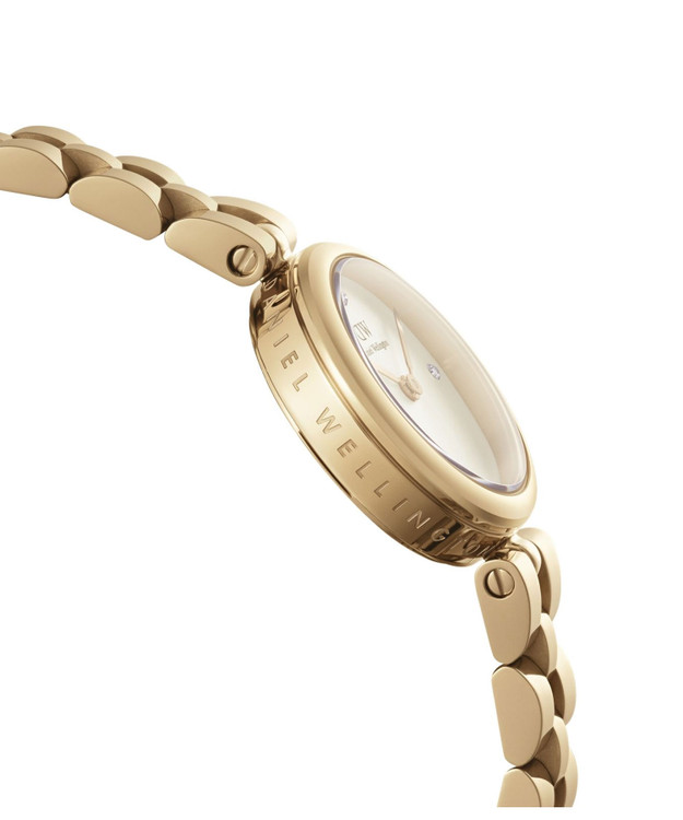 این ساعت از نظر طراحی، یک مدل کلاسیک و لوکس از برند Daniel Wellington است که با ظاهر مینیمال، رنگ طلایی و صفحه ساده سفید، حس ظرافت و شیکبودن را منتقل میکند.