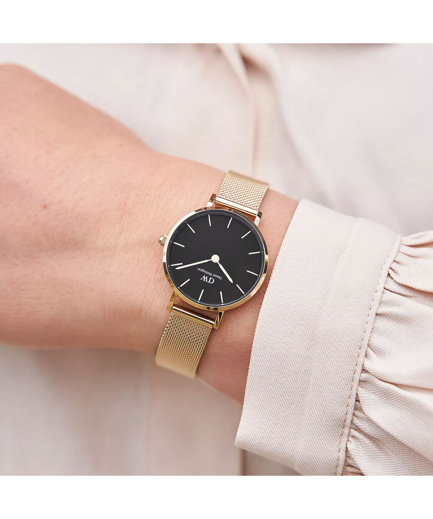 این ساعت از سری بسیار محبوب Petite برند دنیل ولینگتون است که با طراحی مینیمال و کلاسیک خود، به یکی از نمادهای ظرافت در دنیای اکسسوری تبدیل شده است. ترکیب رنگ مشکی عمیق صفحه با بند و قاب طلایی، تضادی خیرهکننده و لوکس ایجاد کرده که با هر استایلی، از رسمی تا روزمره، به زیبایی ست میشود.