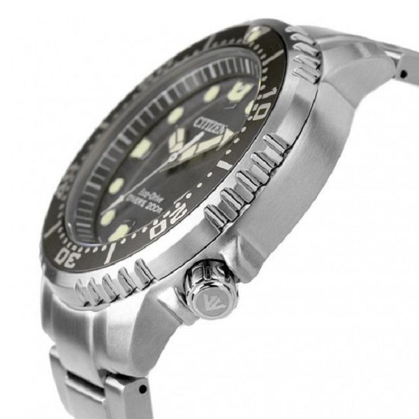 سیتیزن پرومستر دریانوردی در این مدل از سیتیزن دریانوردی مقاومت در برابر فشارآب تا عمق 200متر در نظر گرفته شده تا امکان استفاده در تمام شرایط مخصوصا غواصی برای شما فراهم گردد تامین انرژی در این مدل به وسیله نور محیط بوده و شما نیازی به تعویض باتری نخواهید داشت و هر روز شارژ توسط نور انرژی مورد نیاز شش ماه را تامین می نماید شیشه مینرال کریستال مقاوم در برابر خط وخش قاب استیل ضدزنگ و ضدحساسیت عقربه ها شبنما با وضوح بالا نمایش تقویم روزهای ماه بند ضد حساسیت سایز :44میلی متر ضد آب :200متر میباشد