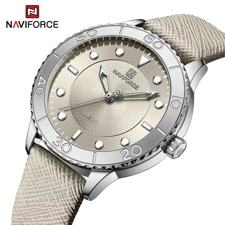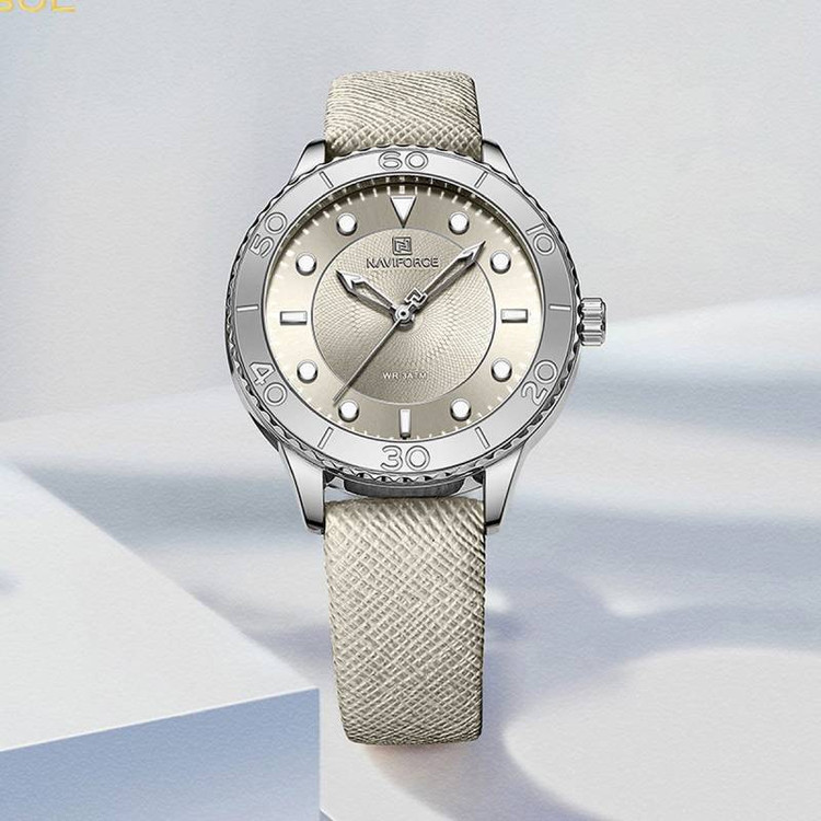 از پرطرفدارترین اکسسوریهای مردانه و زنانه، ساعتهای مچی هستند که در انواع مختلف عقربهای و دیجیتال در بازار عرضه میشوند. معمولا ساعتهای مچی دارای تاریخشمار روز، ماه و سال نیز هستند که در دو نوع مکانیکی و کوارتز وجود دارند. ساعت مچی عقربه ای زنانه نیوی فورس مدل NF5020 دارای موتور کوارتز بوده، این نوع محصول نیروی مورد نیاز خود را از طریق یک باتری تامین میکنند. این مدل ساعتها در اندازهگیری زمان بسیار دقیق و قابل اعتماد بوده و درصد خطای آنها کمتر از انواع دیگر است. ساعت مچی عقربه ای زنانه نیوی فورس مدل NF5020 دارای مقاومت در برابر آب 3 متر است، این ساعت دارای جنس بدنه استیل طلایی رنگ بوده و قابل استفاده برای بانوان است. جنس شیشه این محصول نیز معدنی است. این ساعت عقربهای زنانه دارای ظاهری شیک و جذاب بوده و برای استفاده در شرایط رسمی و نیمهرسمی کاملا مناسب خواهد بود.
