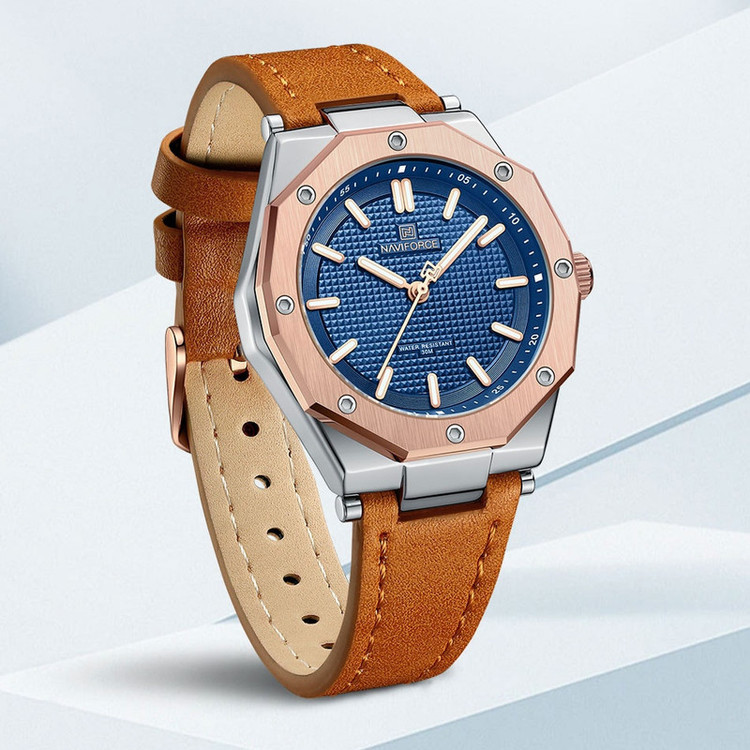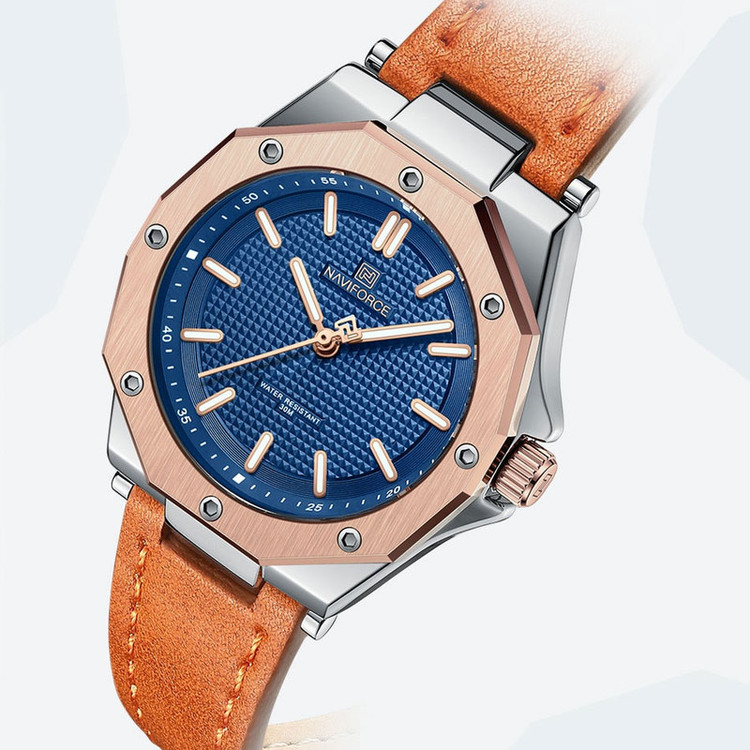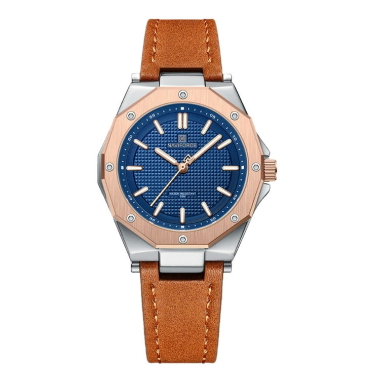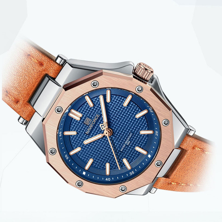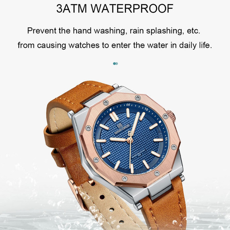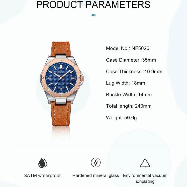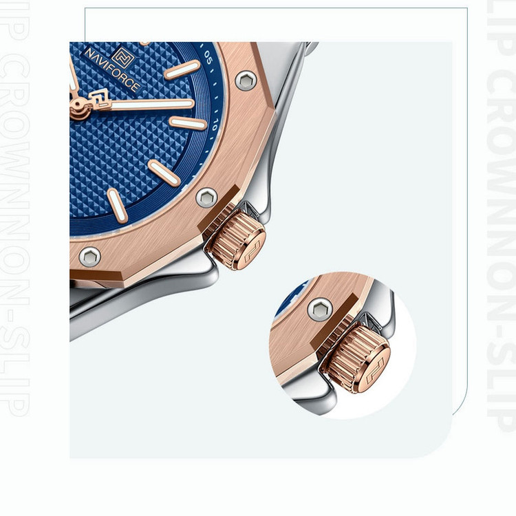 از پرطرفدارترین اکسسوریهای مردانه و زنانه، ساعتهای مچی هستند که در انواع مختلف عقربهای و دیجیتال در بازار عرضه میشوند. معمولا ساعتهای مچی دارای تاریخشمار روز، ماه و سال نیز هستند که در دو نوع مکانیکی و کوارتز وجود دارند. ساعت مچی عقربه ای زنانه نیوی فورس مدل NF5026 دارای موتور کوارتز بوده، این نوع محصول نیروی مورد نیاز خود را از طریق یک باتری تامین میکنند. این مدل ساعتها در اندازهگیری زمان بسیار دقیق و قابل اعتماد بوده و درصد خطای آنها کمتر از انواع دیگر است. ساعت مچی عقربه ای زنانه نیوی فورس مدل NF5026 دارای مقاومت در برابر آب 3 متر است، این ساعت دارای جنس بدنه استیل نقره ای رنگ بوده و قابل استفاده برای بانوان است. جنس شیشه این محصول نیز معدنی است. این ساعت عقربهای زنانه دارای ظاهری شیک و جذاب بوده و برای استفاده در شرایط رسمی و نیمهرسمی کاملا مناسب خواهد بود