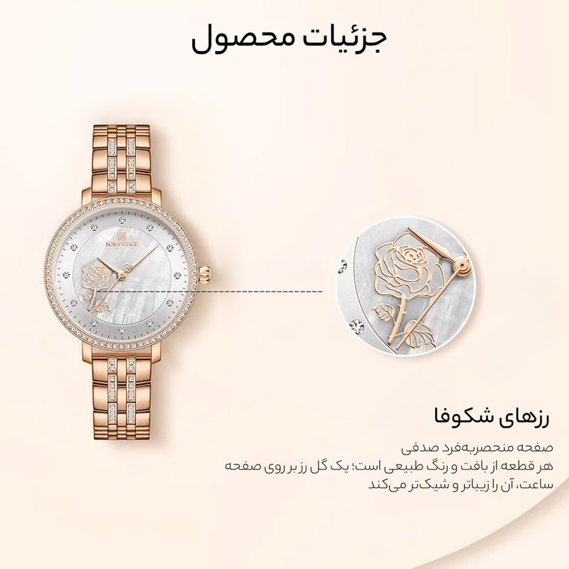 صفحه دورنگ نقره ای و سفید صدفی با نشانگرها و دور شیشه و دو طرف بند نگین دار