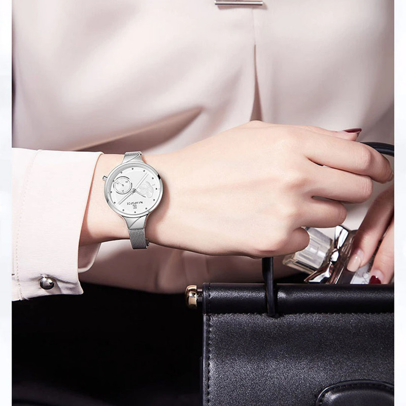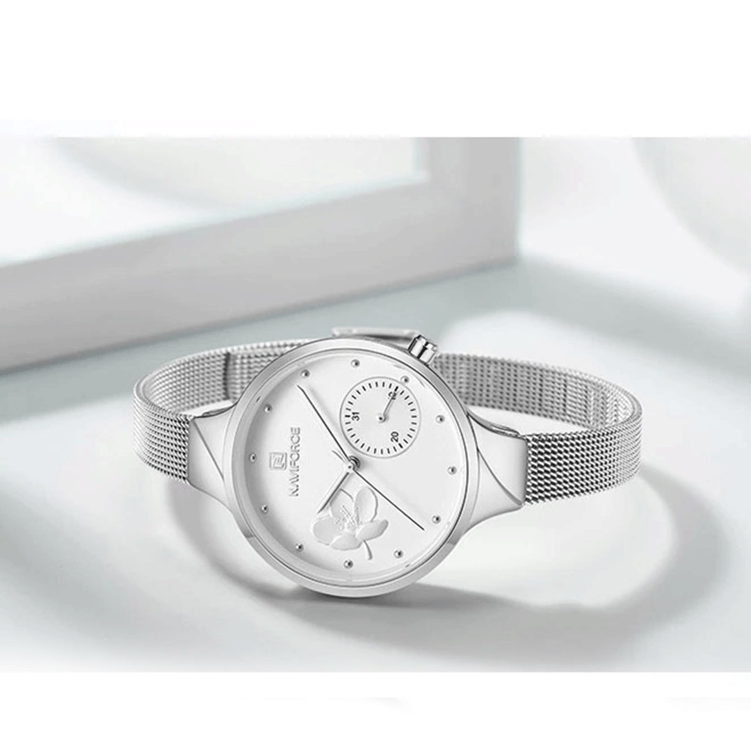 فرم صفحهگردجنس شیشهمعدنیرنگ صفحهسفید صدفیرنگ بدنهنقرهایجنس بنداستیلرنگ بندنقر ه اینوع قفل بندتاشو با محافظقطر صفحه ساعت33 میلی مترجنس بدنهاستیل
