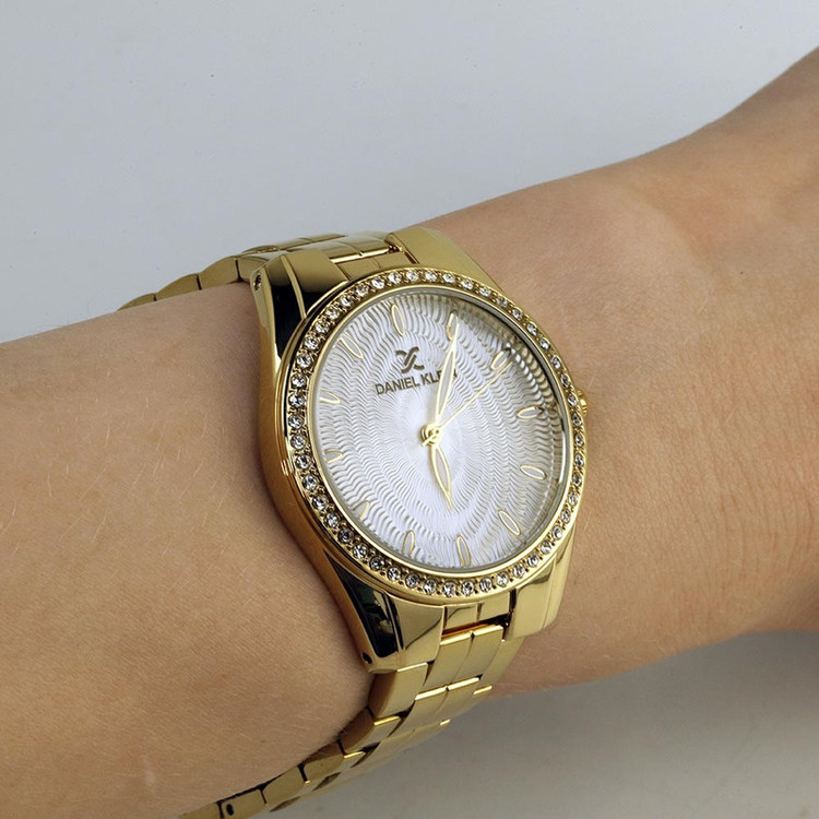 این طرح از برند ساعت زنانه دنیل کلین با طراحی خاص خود برای تیپهای مجلسی بسیار مناسب میباشد. بند و بدنه ی این ساعت دنیل کلین از جنس استیل است و از رنگ طلایی و نقره ای در آن استفاده شده است. از ویژگیهای منحصر به فرد این ساعت میتوان به طراحی ساعت اشاره کرد که برای تیپهای مجلسی بسیار مناسب میباشد و همچنین طراحی بدنه ی این طرح از ساعت دنیل کلین بسیار متفاوت و شیک است که چشم هر بیننده ای را خیره میکند.