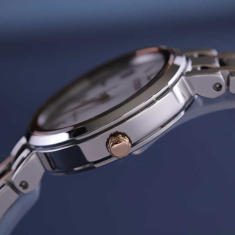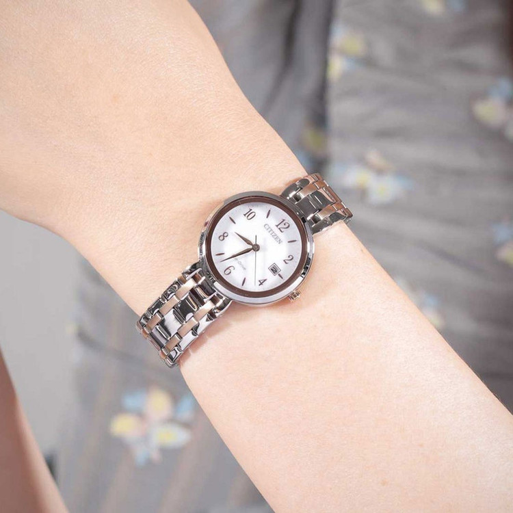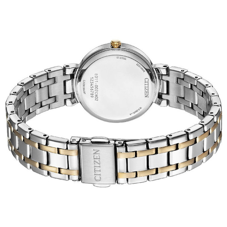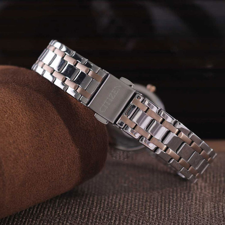 این مدل از ساعت مچی های زنانه برند سیتی زن دارای بند و بدنه اسنیل نقره ای و رزگلد بوده و مناسب با تیپ کلاسیک و مجلسی طراحی شده است. این طرح از ساعت مچی های برند سیتی زن اکودرایو بوده و قابلیت شارژ با نورمحیط را دارد.از ویژگی های منحصر بفرد این ساعت میتوان به ذخیره شارژ باطری تا 6ماه و نمایشگر روزهای ماه اشاره کرد.