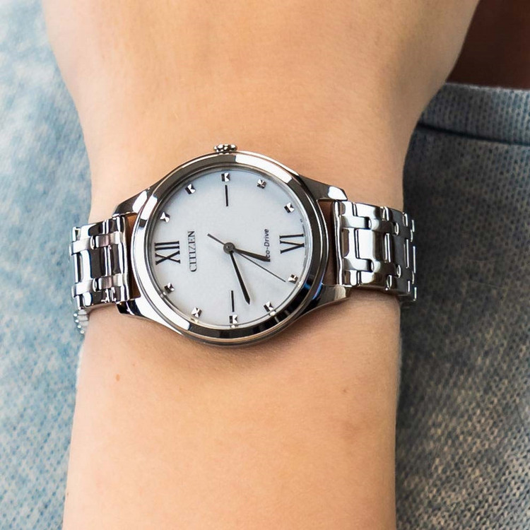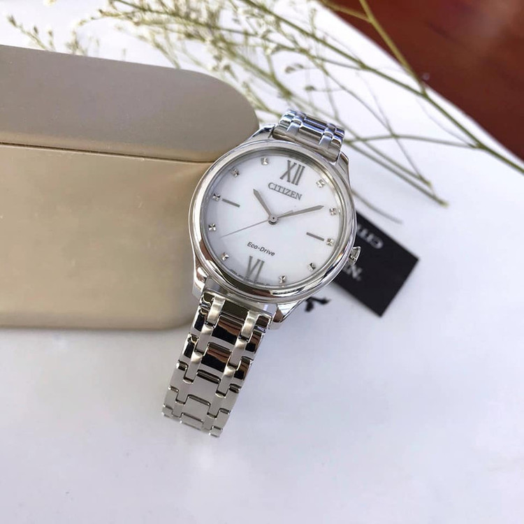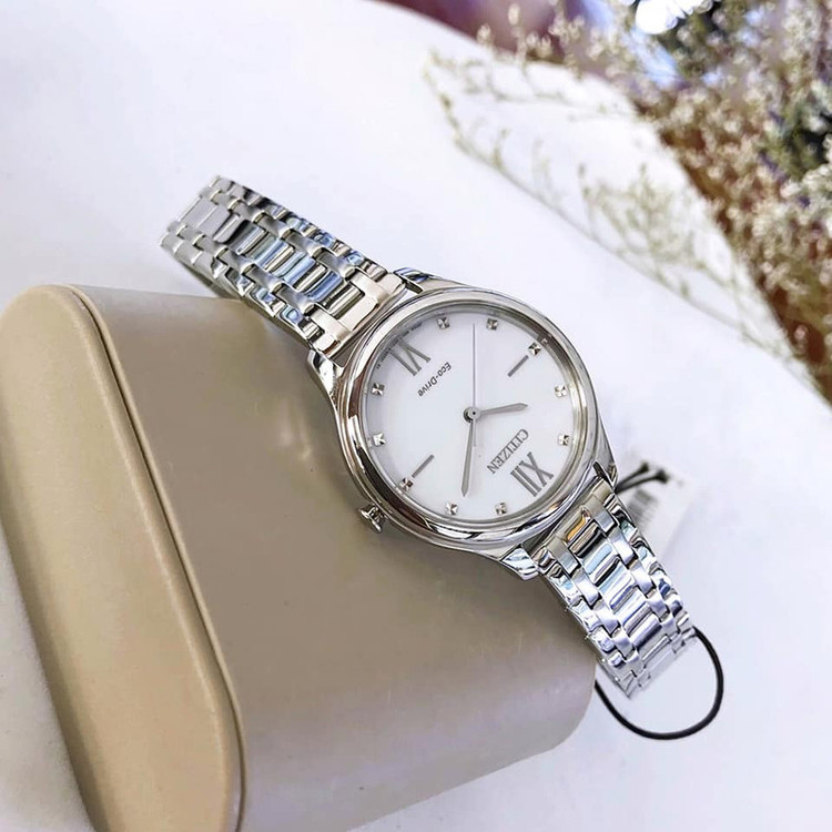 این مدل از ساعت مچی های زنانه برند سیتیزن دارای بدنه و بند استیل نقره ای می باشد. این ساعت اکودرایو بوده و قابلیت شارژ با نور را دارد. طراحی خاص صفحه این ساعت جذابیت منحصر به فردی به این ساعت بخشیده است.از ویژگی های منحصر بفرد این ساعت میتوان به ذخیره شارژ باطری تا 6ماه اشاره کرد.
