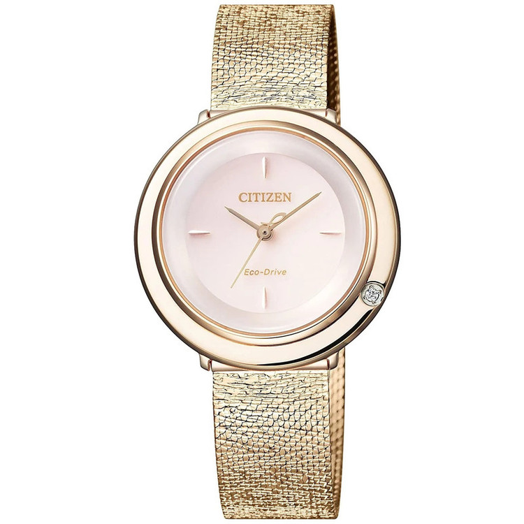 این طرح از ساعت مچی های زنانه سیتیزن براساس سبک کلاسیک و مجلسی طراحی شده است و اکودرایو بوده و قابلیت شارژ با نور محیط را دارد. این مدل از ساعت مچی های برند سیتیزن دارای بند حصیری و بدنه استیل طلایی می باشد. همچنین در بدنه این ساعت یک عدد نگین الماس تعبیه شده است که زیبایی و ارزش این ساعت را دوچندان کرده است. از ویژگی های منحصر بفرد این ساعت میتوان به ذخیره شارژ باطری تا 6ماه اشاره کرد.