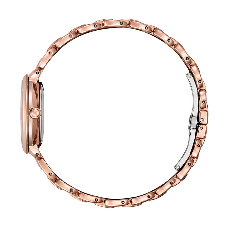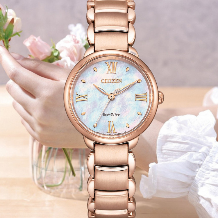 این طرح از ساعت مچی های زنانه برند سیتیزن از طرح های کلاسیک و مجلسی این برند می باشد و از طراحی خاص و منحصر به فردی برخوردار بوده و دارای بند و بدنه استیل با رنگ رزگلد و صفحه ی صدفی می باشد. این مدل از ساعت مچی های زنانه سیتی زن اکودرایو بوده و قابلیت شارژ با روشنایی و نور را دارند. طراحی های کمپانی سیتیزن منحصر به فرد میباشند این مدل هم ساعت بسیار شیک و ساده میباشد و در عین سادگی با تک رنگ بودن توجه بسیاری جلب میکند. میتواند کادوی مناسبی برای تولد، روز زن، روز دختر و ولنتاین باشد. همچنین این ساعت قابلیت ذخیره شارژ باطری تا 6ماه را دارد.